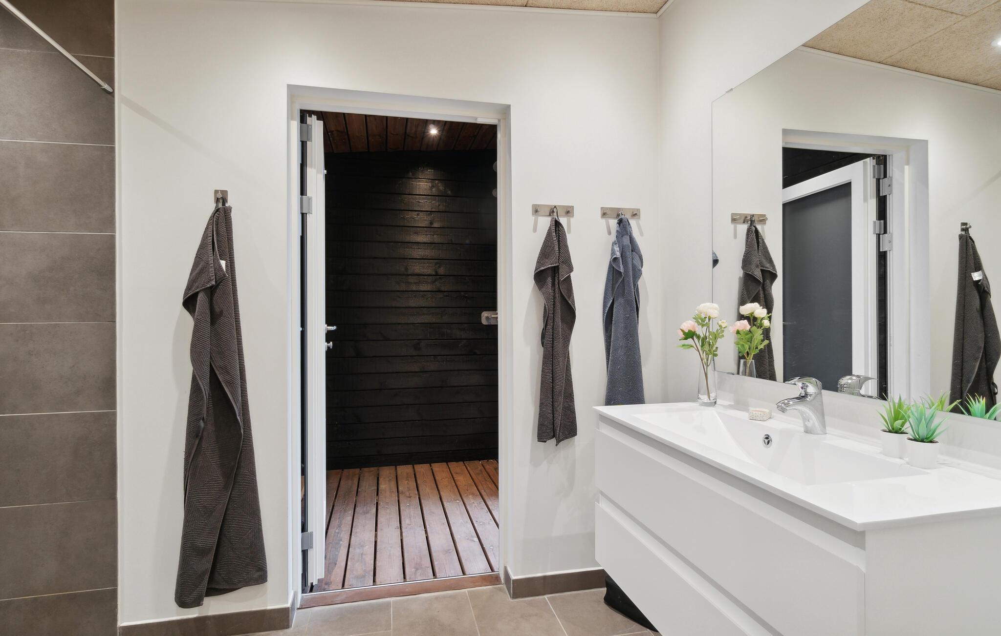 Glæd jer til en ferie i dette indbydende og rummelige feriehus med udendørs wellness.