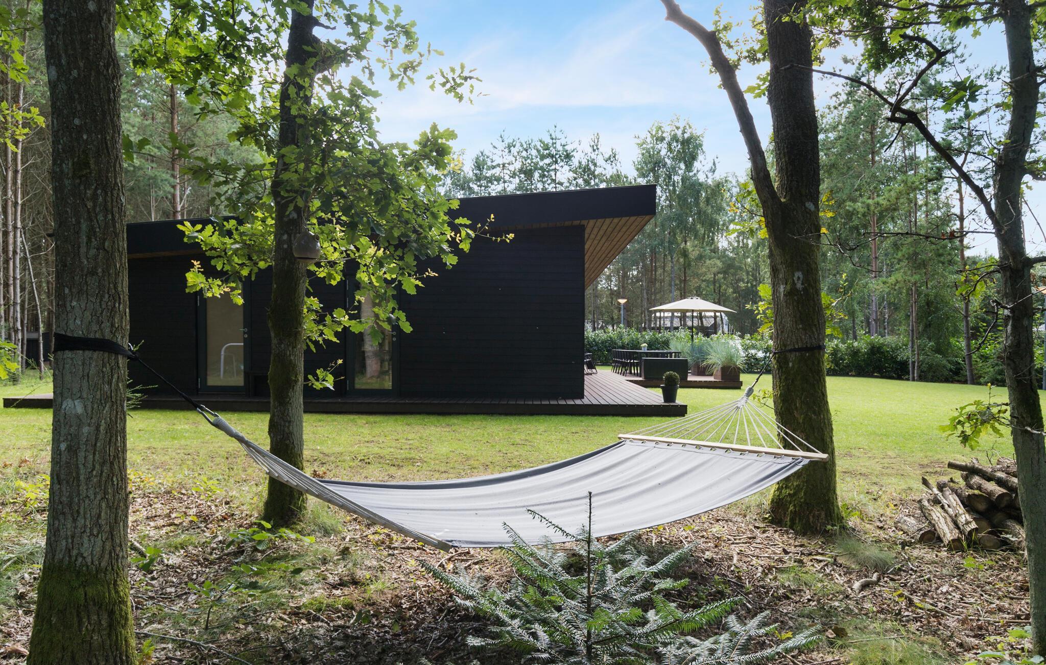 Indbydende feriehus i Fuglslev med udendørs wellness, sauna, stor naturgrund og moderne faciliteter til en afslappende ferie.