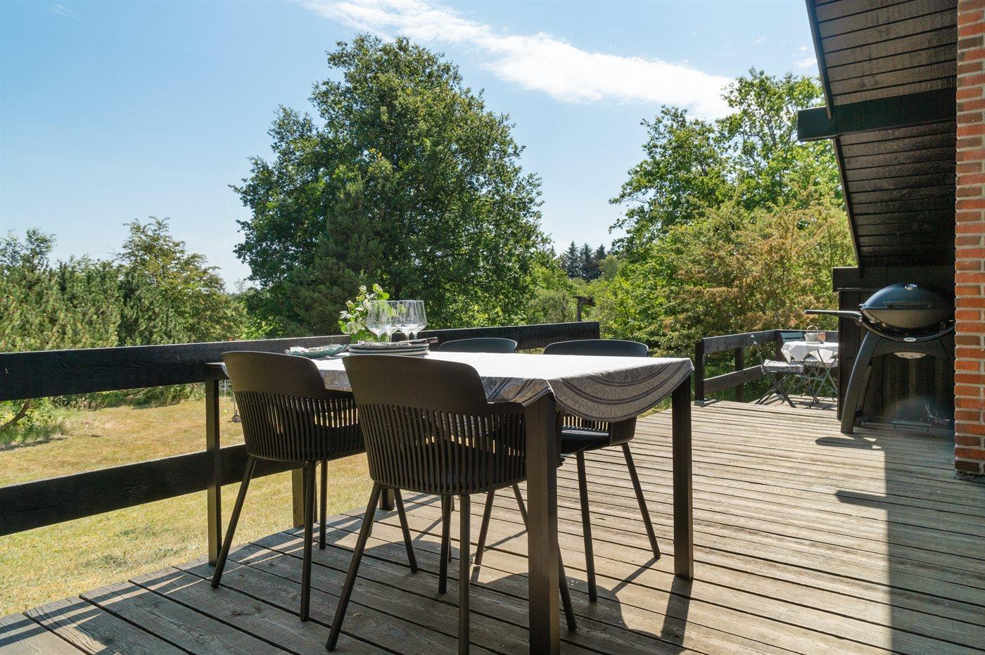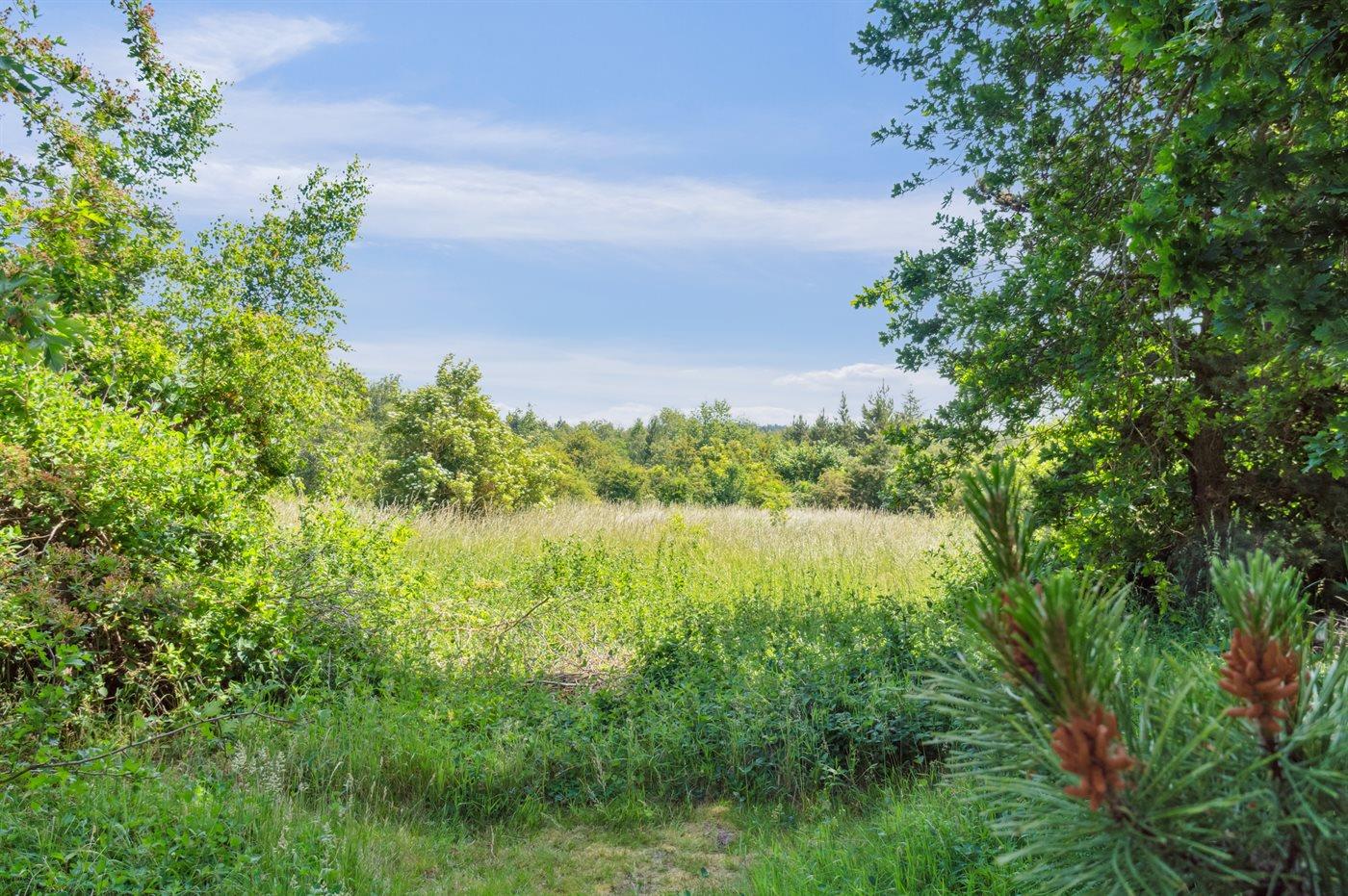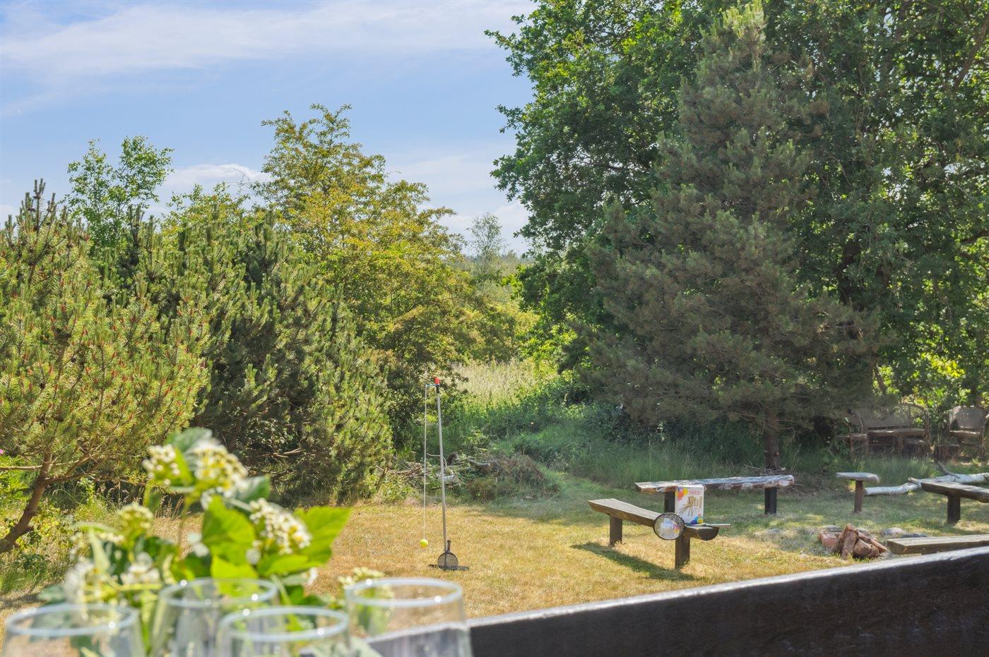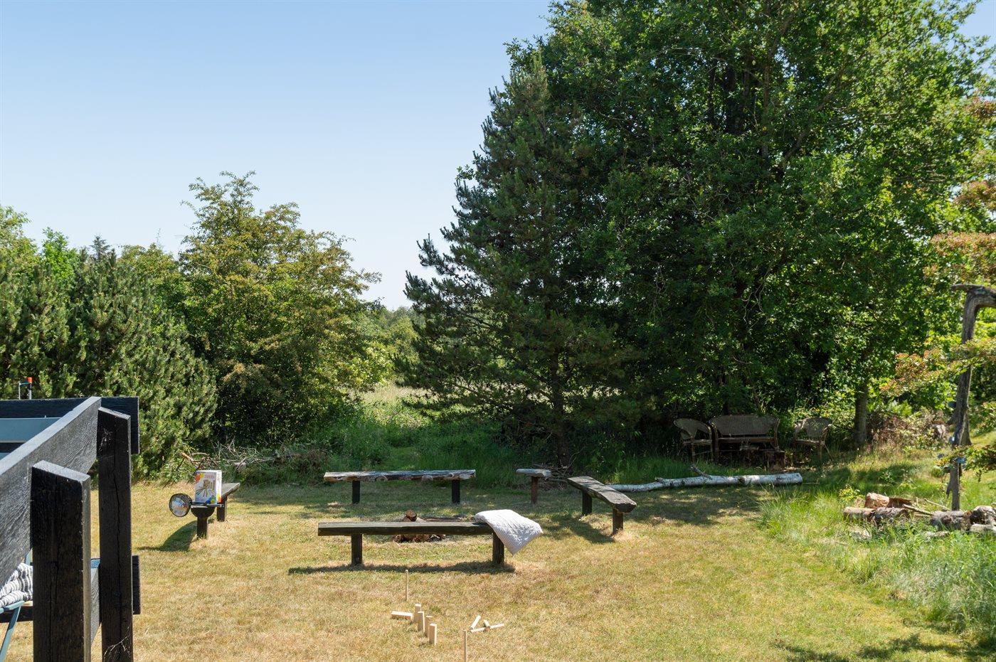 Ferieboligen er beliggende på en 2850 m² stor naturgrund. Der er 300 m til fjorden. Nærmeste forretning er beliggende i en afstand af 4000 m. Der er en golfbane i en afstand af 18000 m. Til ferieboligen hører åbent terrasseareal. Desuden er der overdækket terrasse. Udgang til altan. Der ligger en legeplads i en afstand af 4000 m. Bålsted. Weber gasgrill til rådighed. Parkering ved ferieboligen.