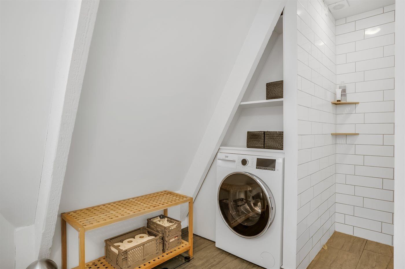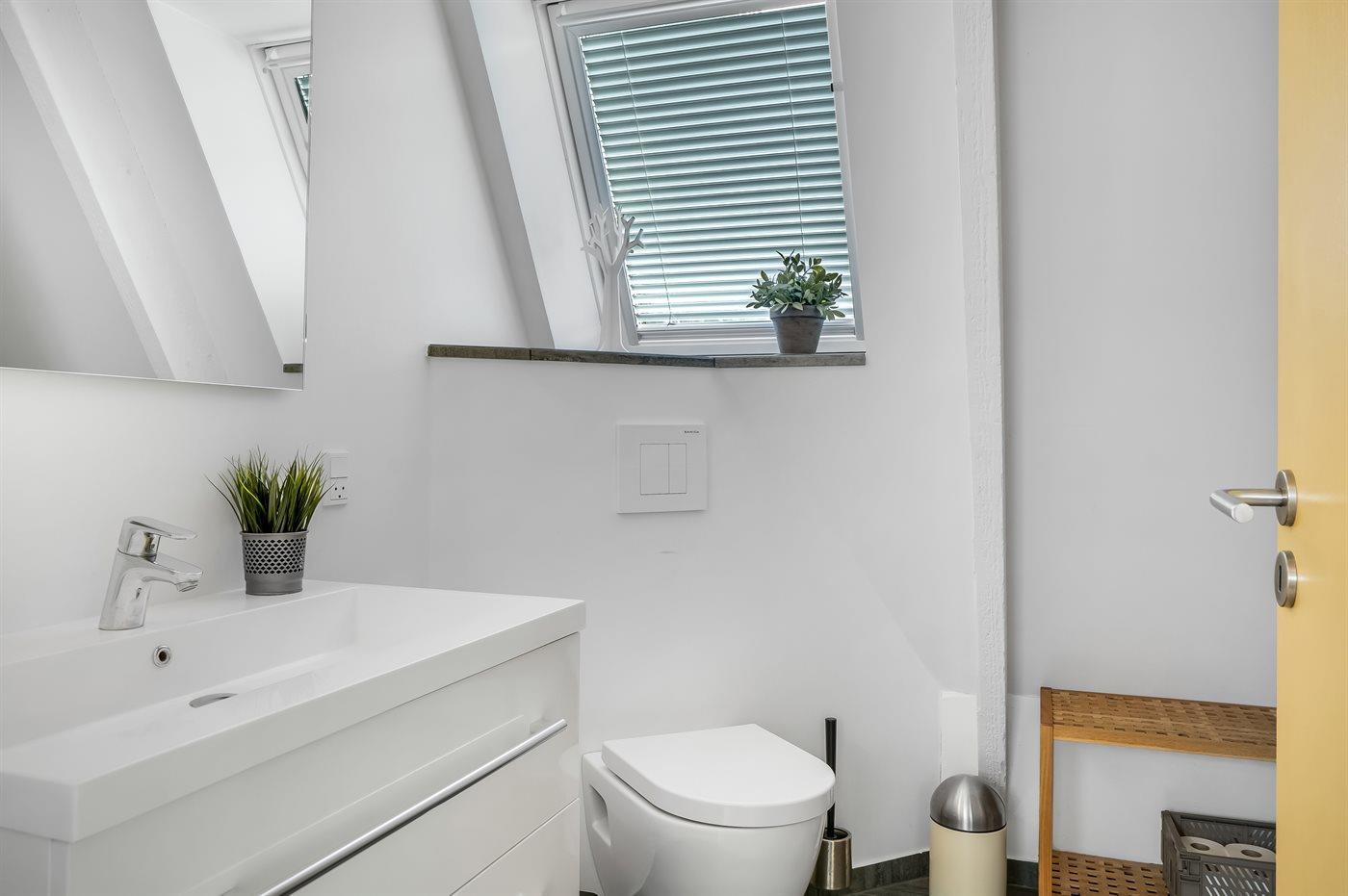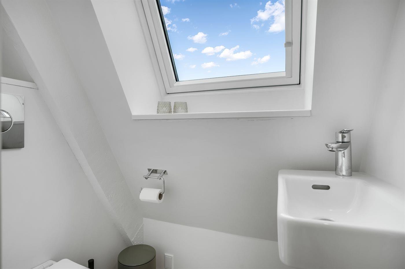Der er 1 badeværelse med bruseniche og 2 toiletter, heraf 1 gæstetoilet. Der er gulvvarme på 1 badeværelse.