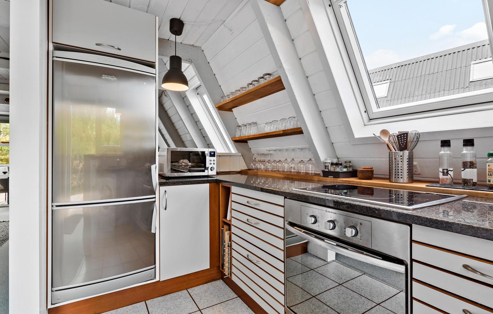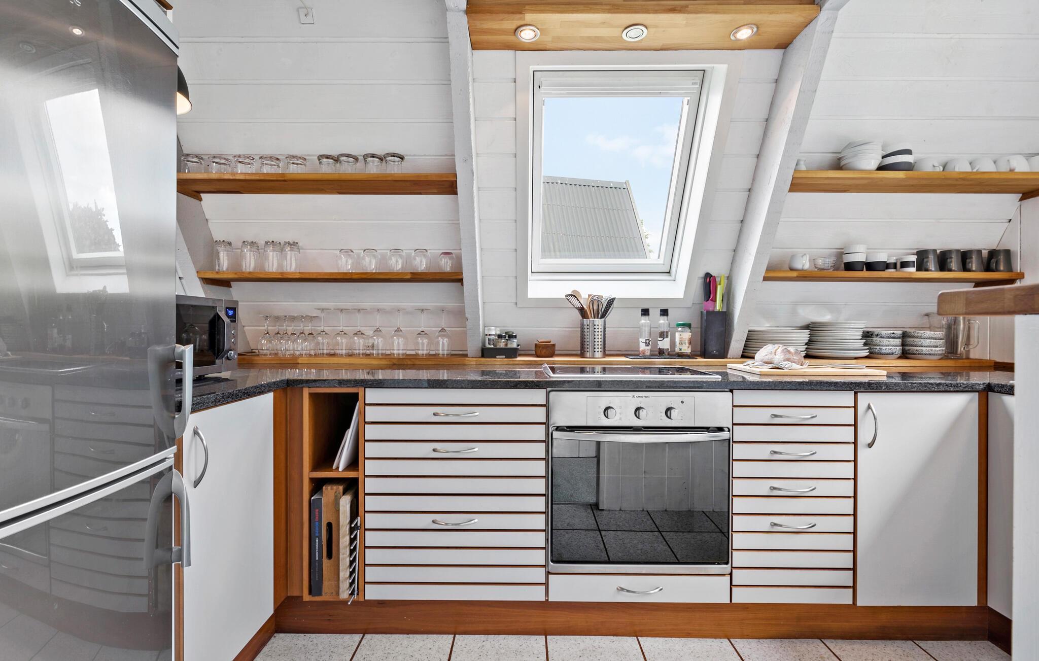 Velkommen til dette karakteristiske feriehus, hvor I som lille familie får en dejlig ramme om årets ferie i et område med mange fine muligheder for en aktiv ferie. Huset er nydeligt indrettet over flere etager med lyse skråvægge, komfortable møbler og et veludstyret køkken, hvor I kan kræse om livretterne efter en dejlig dag på farten. Lad en hyggelig aften gå på hæld med god mad ved spisebordet og en god film eller brætspil i sofahjørnet, mens I lægger planer for de kommende dage.