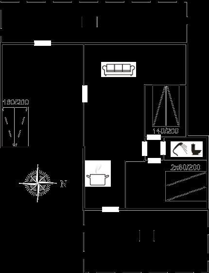 Der er i alt 2 soveværelser. Sovepladserne fordeler sig på: 4 sovepladser i dobbeltsenge. 2 sovepladser i enkeltsenge. 2 af disse sovepladser befinder sig i stuen. Derudover er der 1 stk. barneseng.