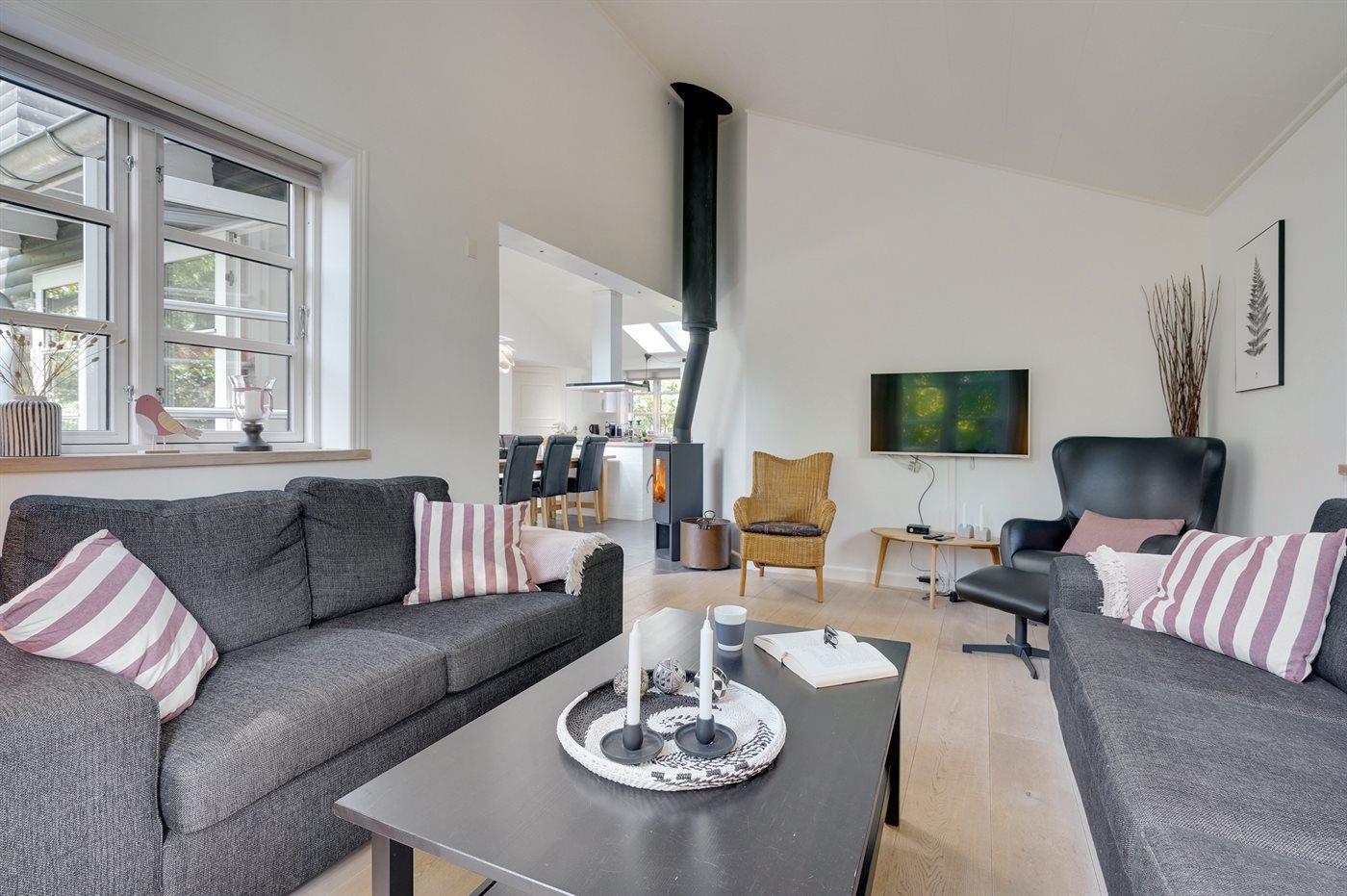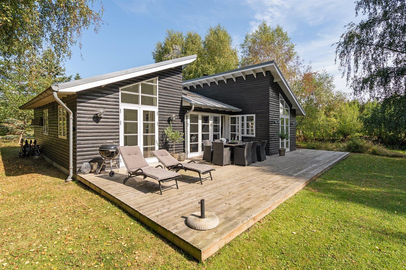 Et hyggeligt og rummeligt sommerhus på lukket vej i roligt sommerhusområde. Huset giver gode muligheder for både indendørs og udendørs hygge. Terrassen mod den forholdsvis lukkede have danner rammen for mange timers hyggelig ferie. Er man til indendørs forkælelse, kan man hoppe en tur i spa eller nyde kaffen foran brændeovnen.