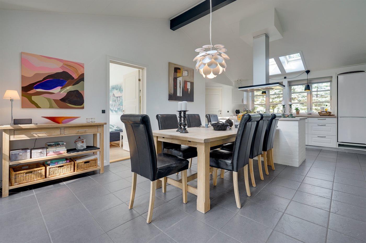 Køkkenet er udstyret med 1 køleskab. Der er 4 induktionskogeplader, varmluftovn, mikrobølgeovn samt opvaskemaskine.