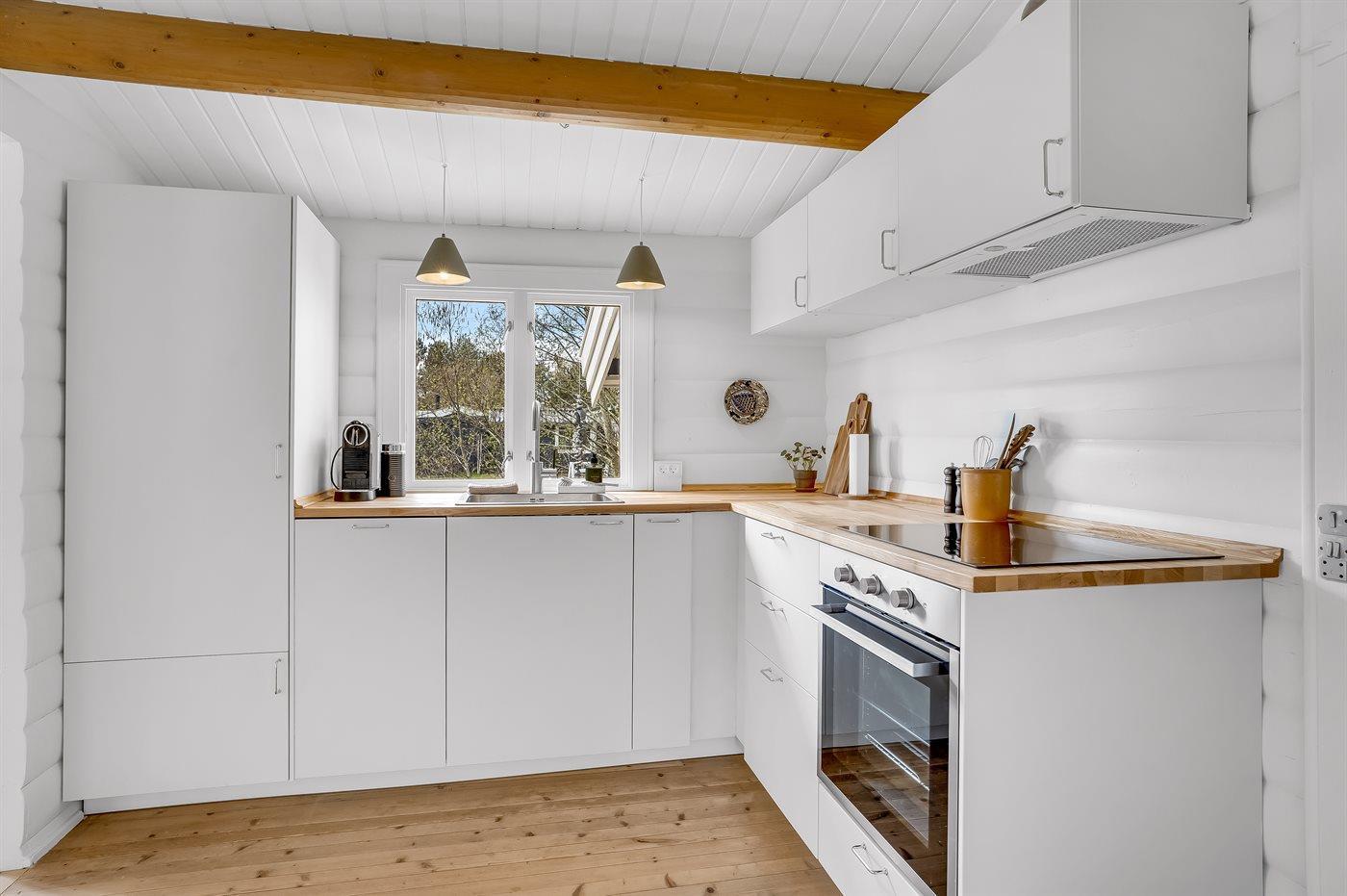Køkkenet er udstyret med 1 køleskab. Der er 4 induktionskogeplader, varmluftovn, mikrobølgeovn samt opvaskemaskine.