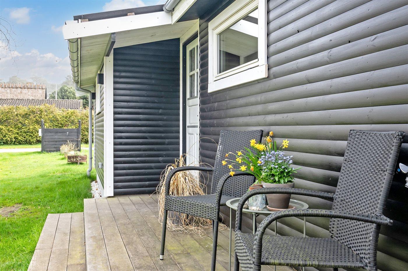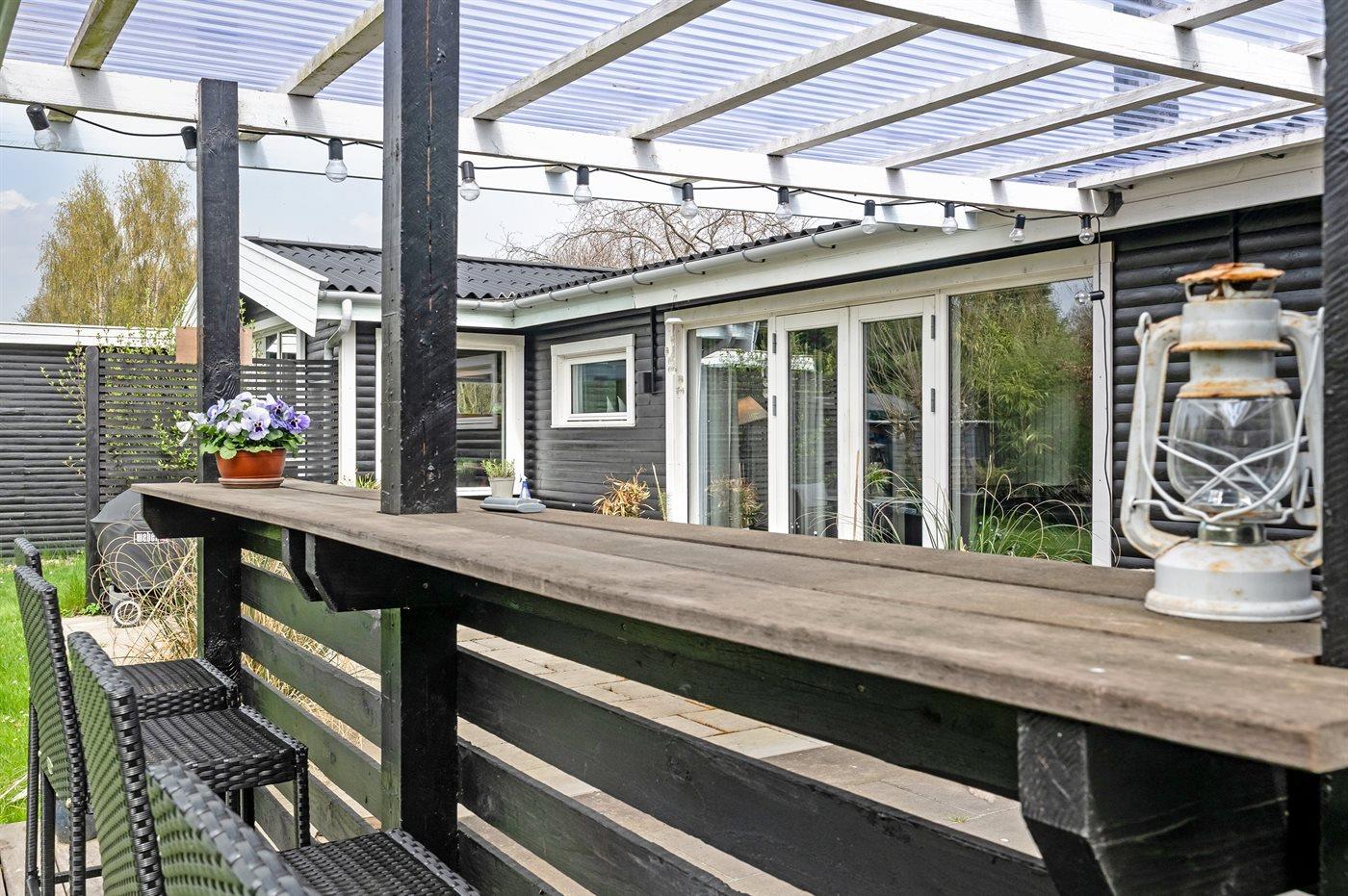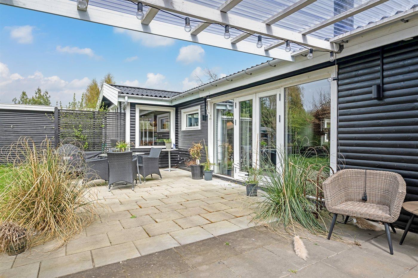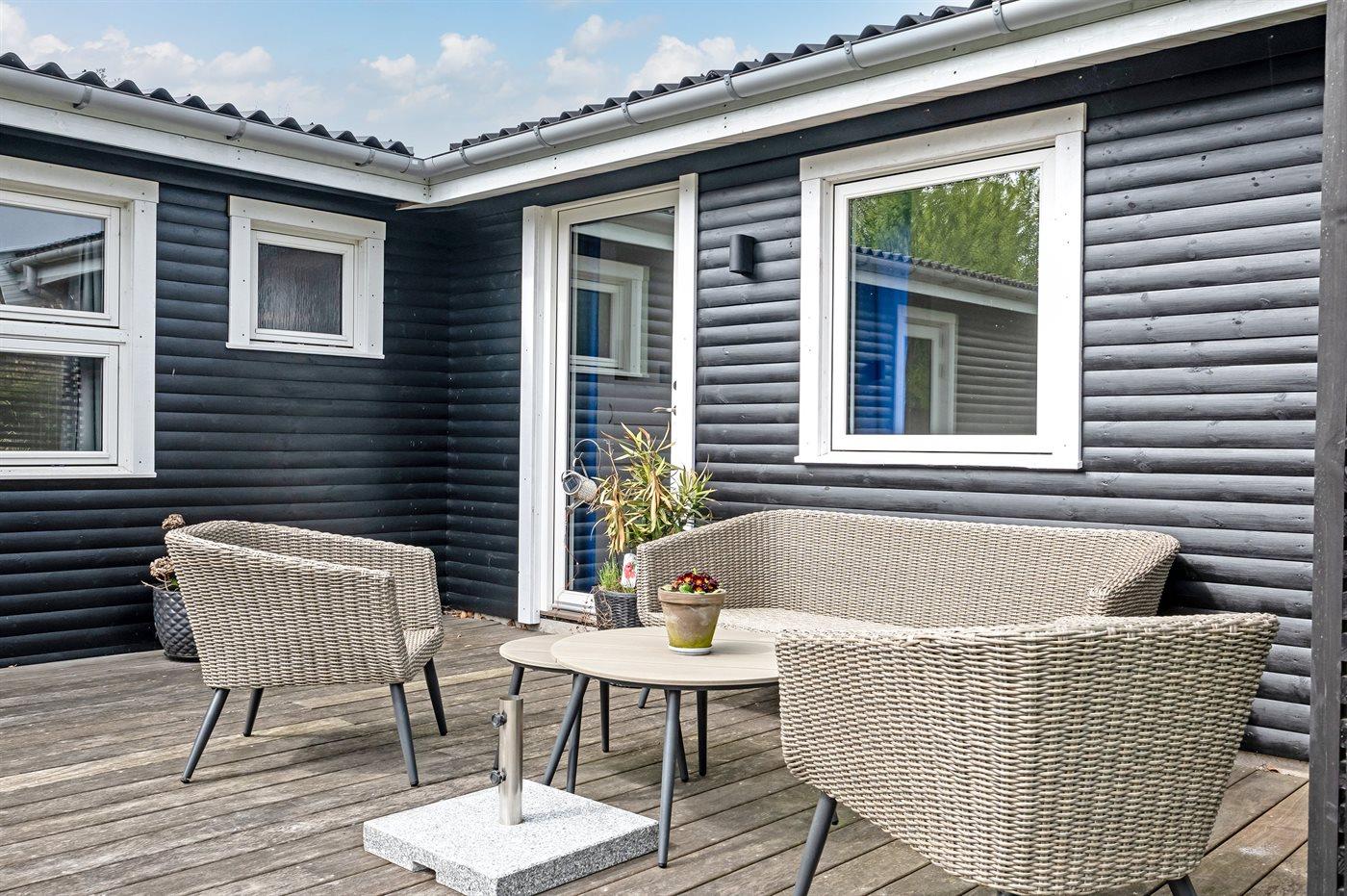 Udenfor finder du den skønne terrasse som egner sig perfekt til morgenkaffen i solen eller sommeraftener i baren med grill og hyggeligt samvær. I den frodige have er der god plads til leg for børn og barnlige sjæle.