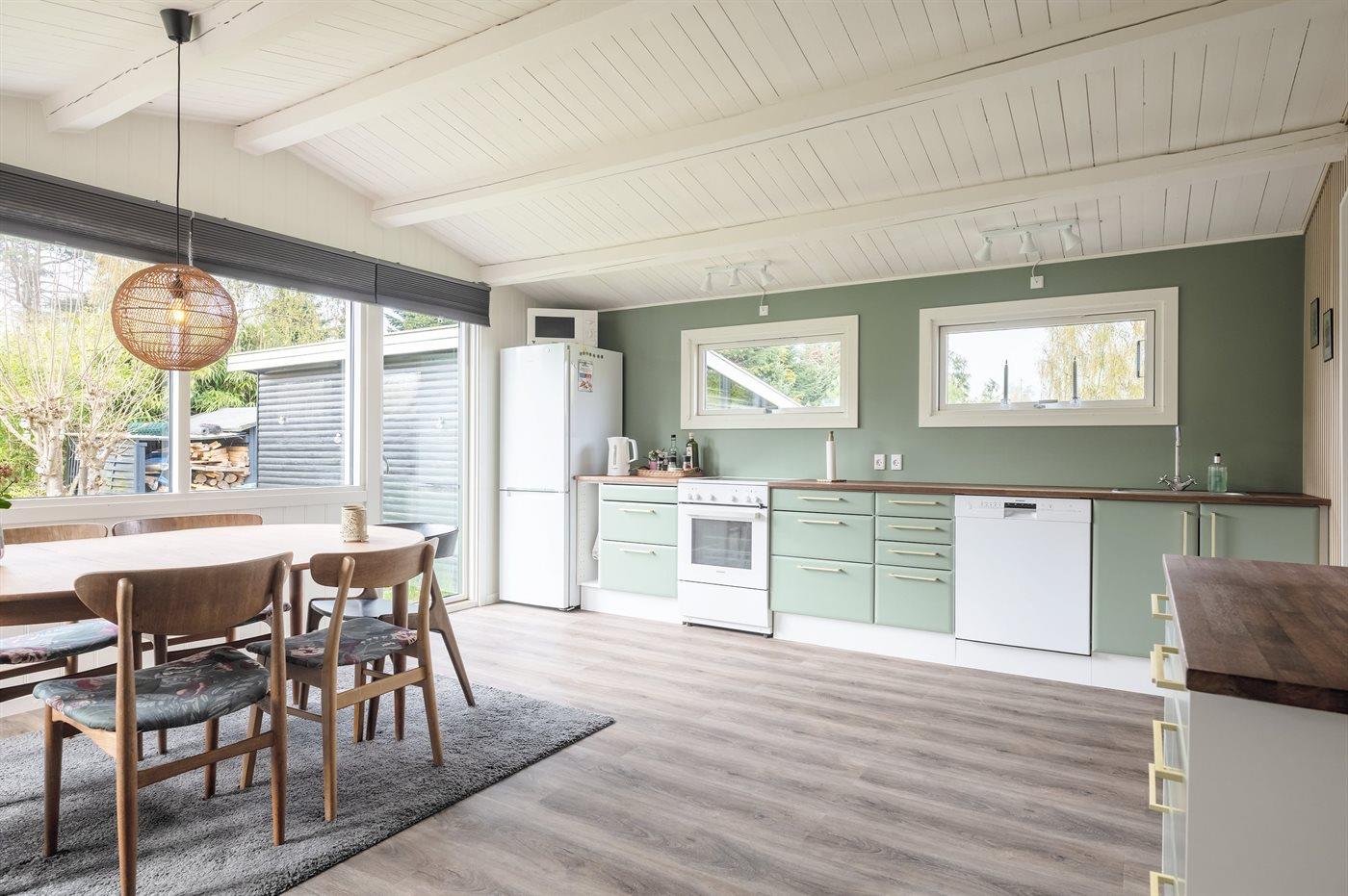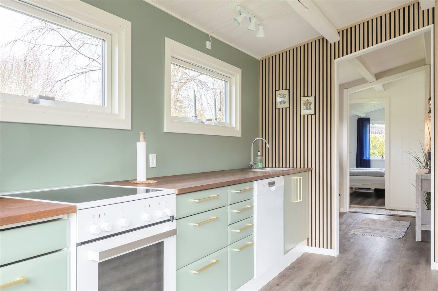 Køkkenet er udstyret med 1 køleskab. Der er 4 keramiske kogeplader, varmluftovn, mikrobølgeovn samt opvaskemaskine.