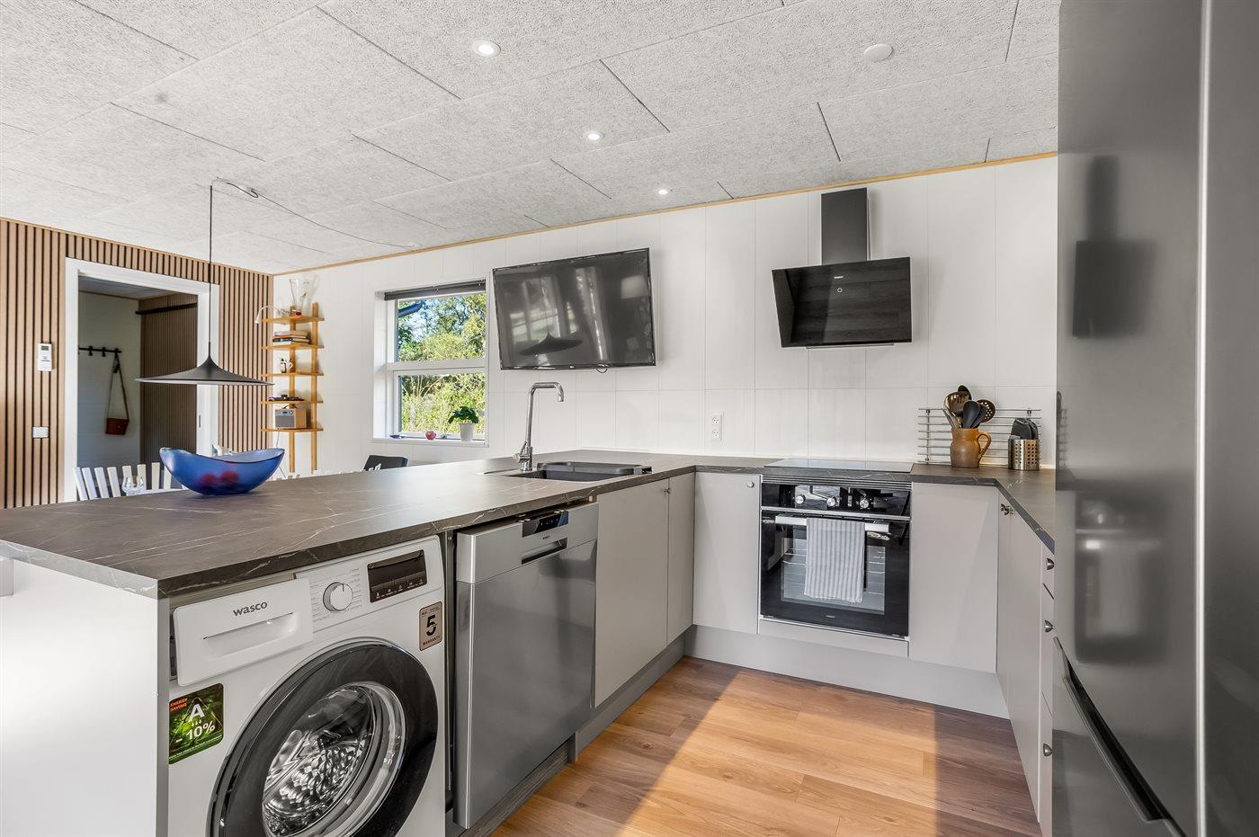 Køkkenet er udstyret med 1 køleskab. Der er 4 induktionskogeplader, varmluftovn, mikrobølgeovn, Airfryer samt opvaskemaskine.