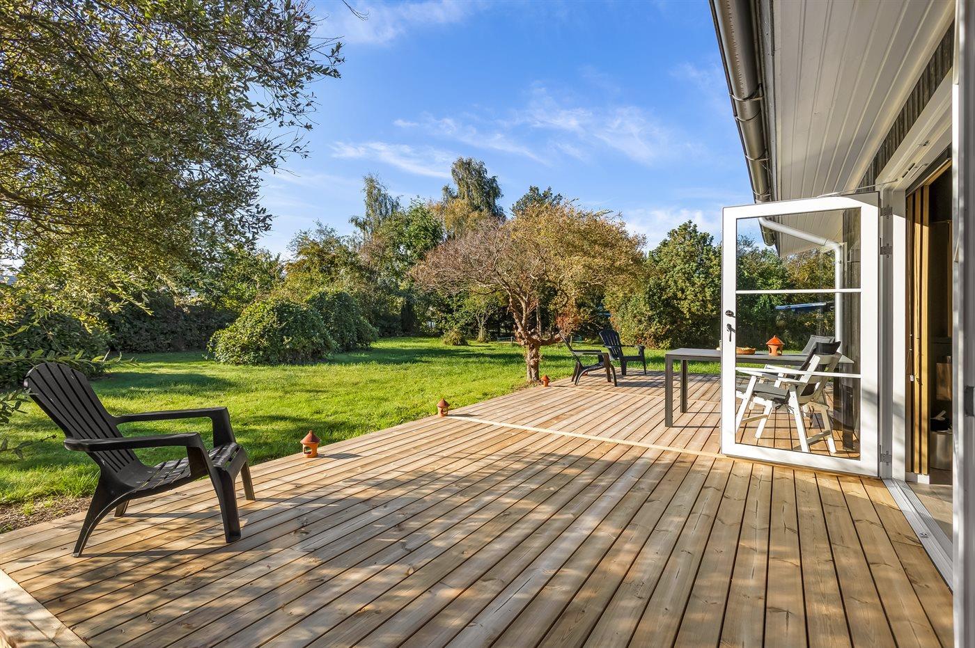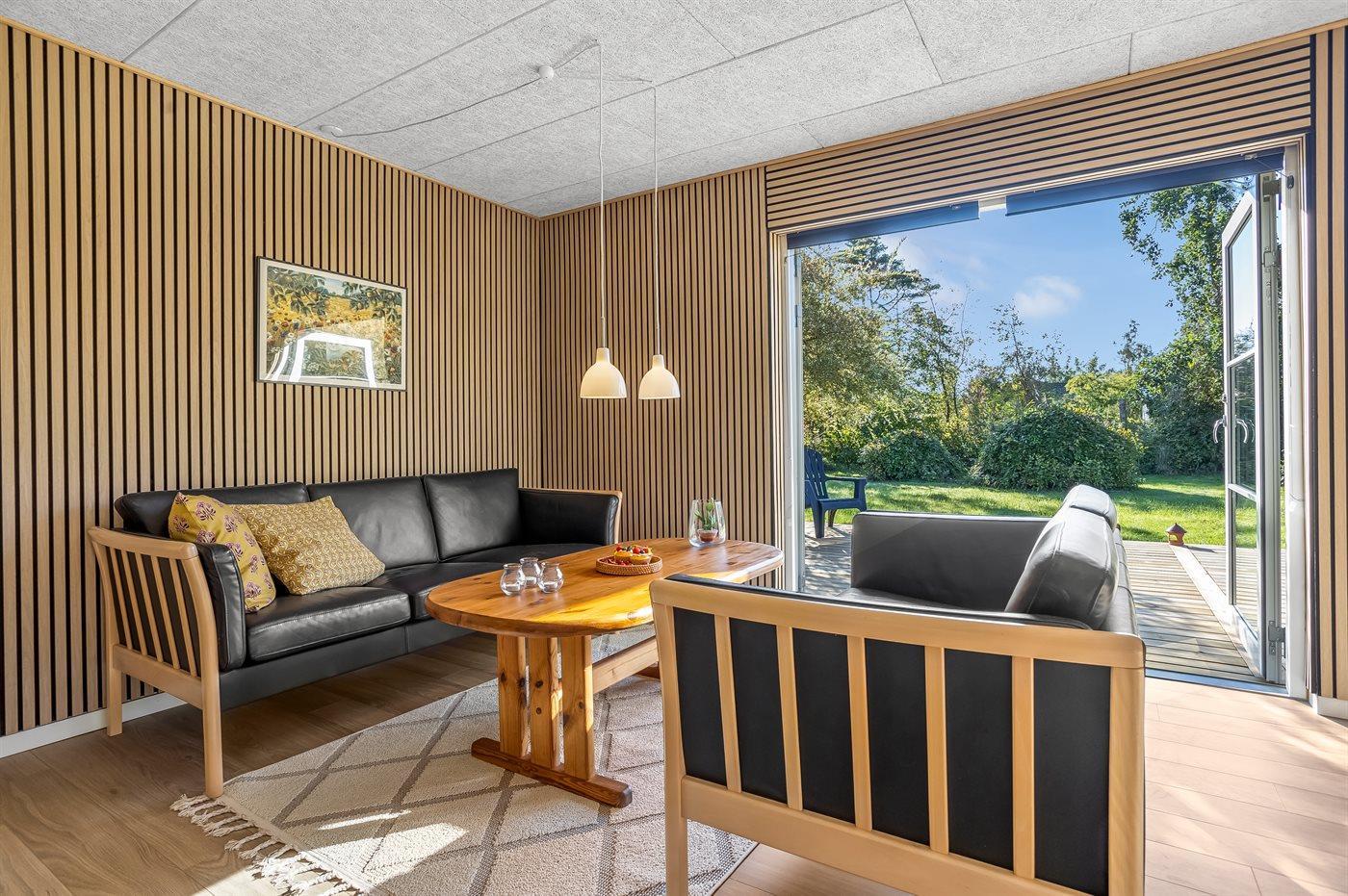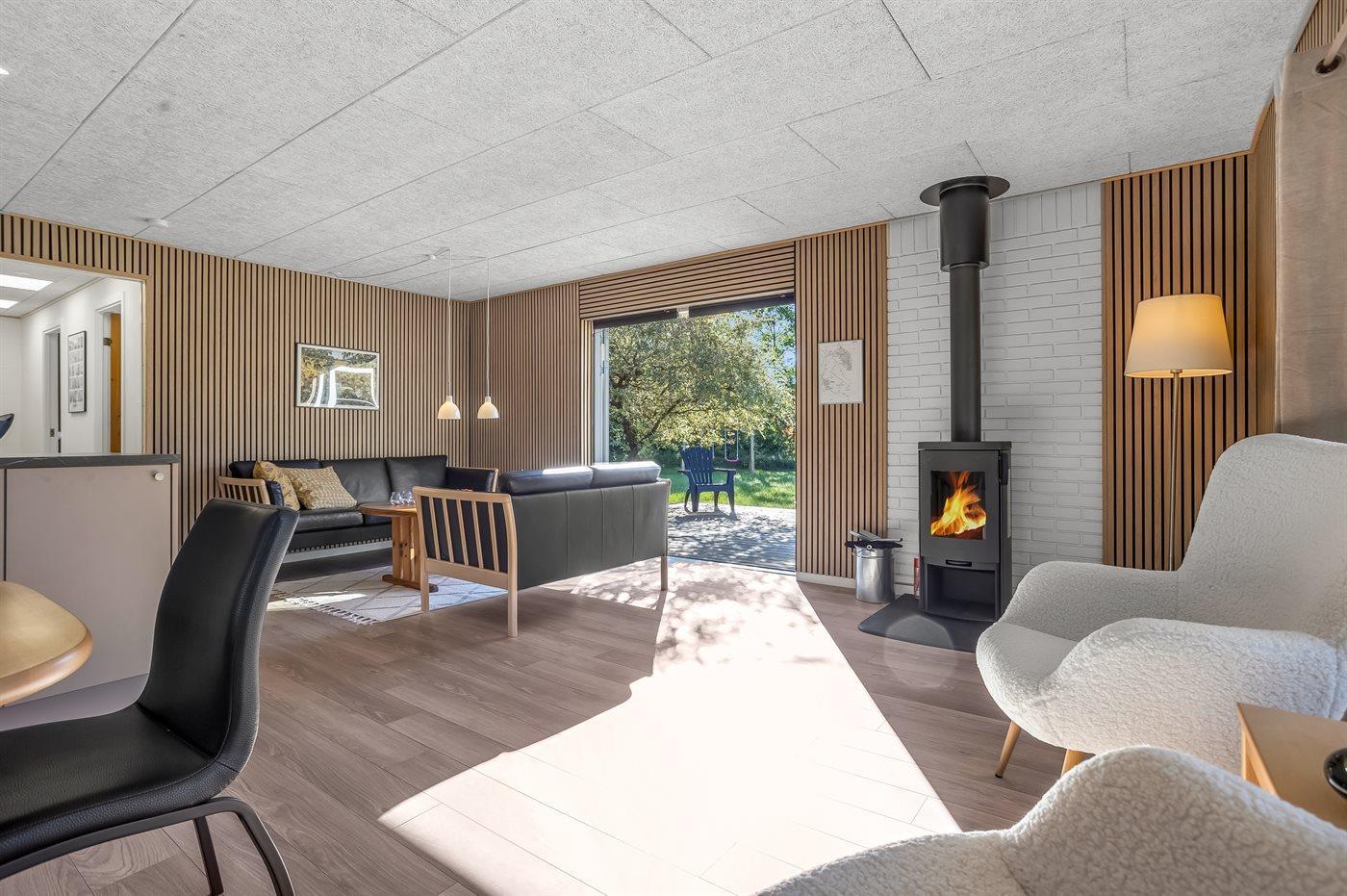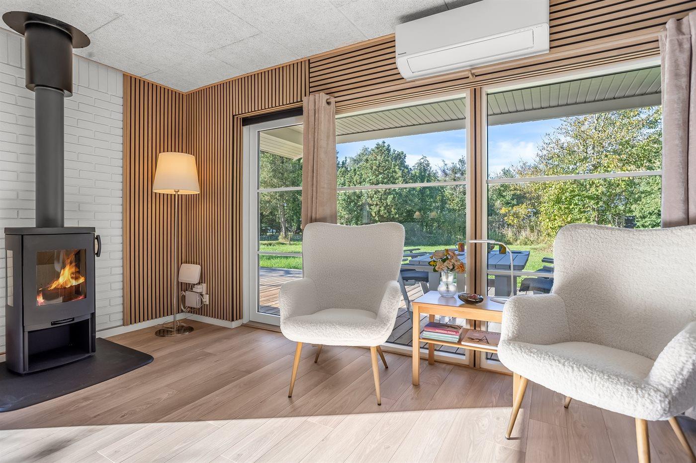 Hyggeligt og moderniseret sommerhus i Gedesby med stor terrasse, brændeovn og moderne køkkenfaciliteter.
