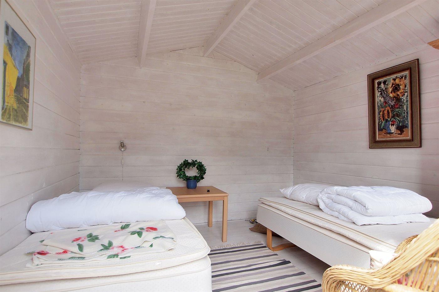 Der er i alt 2 soveværelser. Sovepladserne fordeler sig på: 2 sovepladser i dobbeltseng. 2 sovepladser i enkeltsenge. 2 sovepladser i sovesofa (dobbelt). 2 af disse sovepladser befinder sig i et anneks og 2 af dem befinder sig i opholdsstuen.
