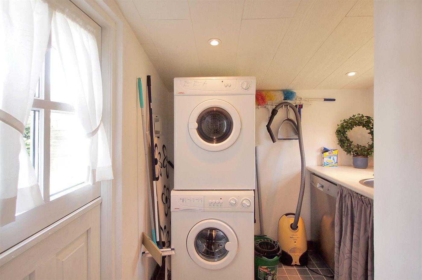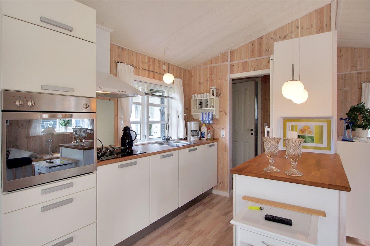 Køkkenet er udstyret med 1 køleskab. Der er 4 keramiske kogeplader, bageovn, mikrobølgeovn samt opvaskemaskine.