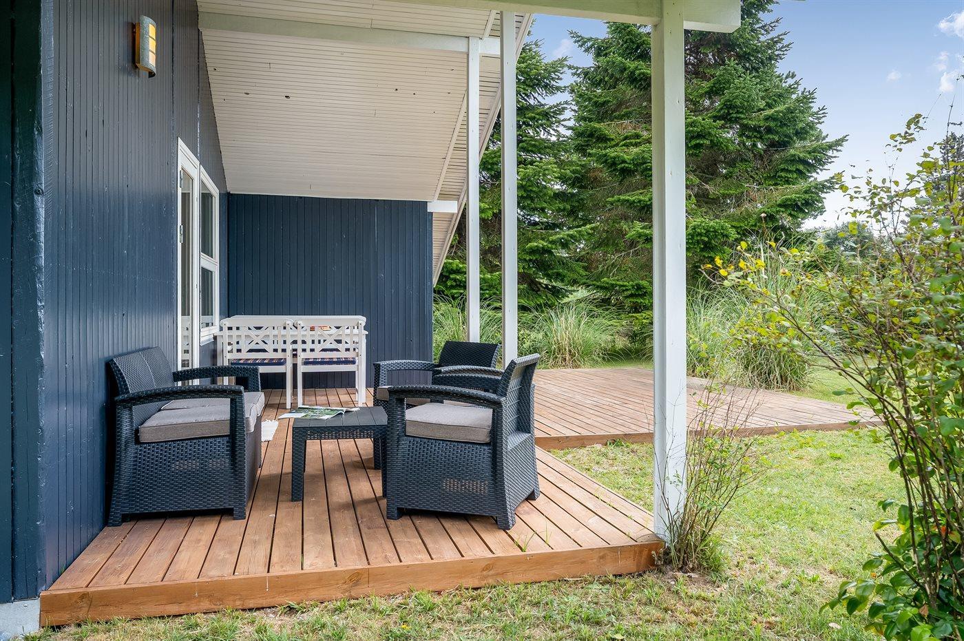Ferieboligen er beliggende på en 971 m² stor havegrund. Der er 800 m til havet. Nærmeste forretning er beliggende i en afstand af 4400 m. Til ferieboligen hører åbent terrasseareal. Desuden er der overdækket terrasse. Parkering ved ferieboligen.