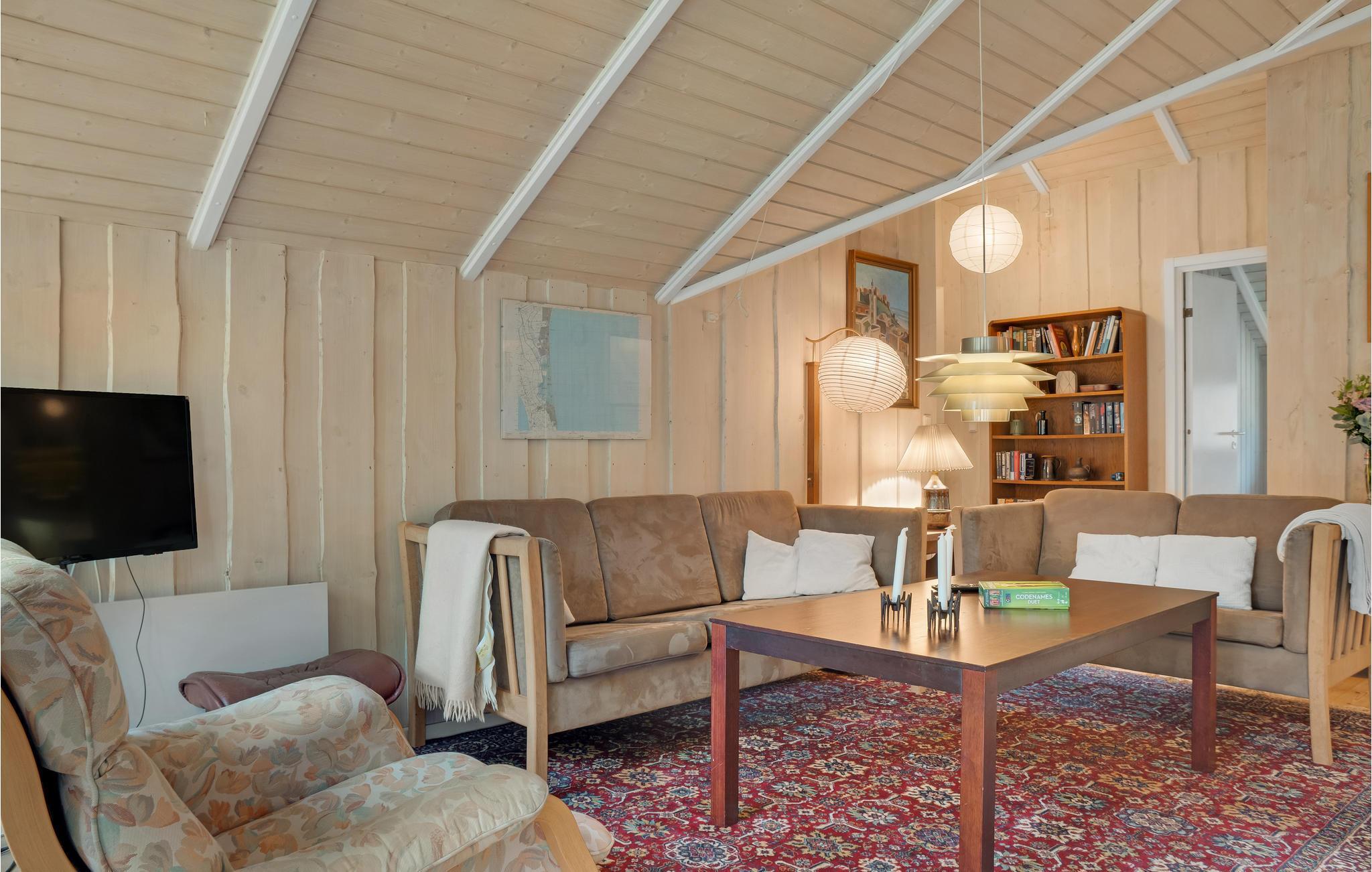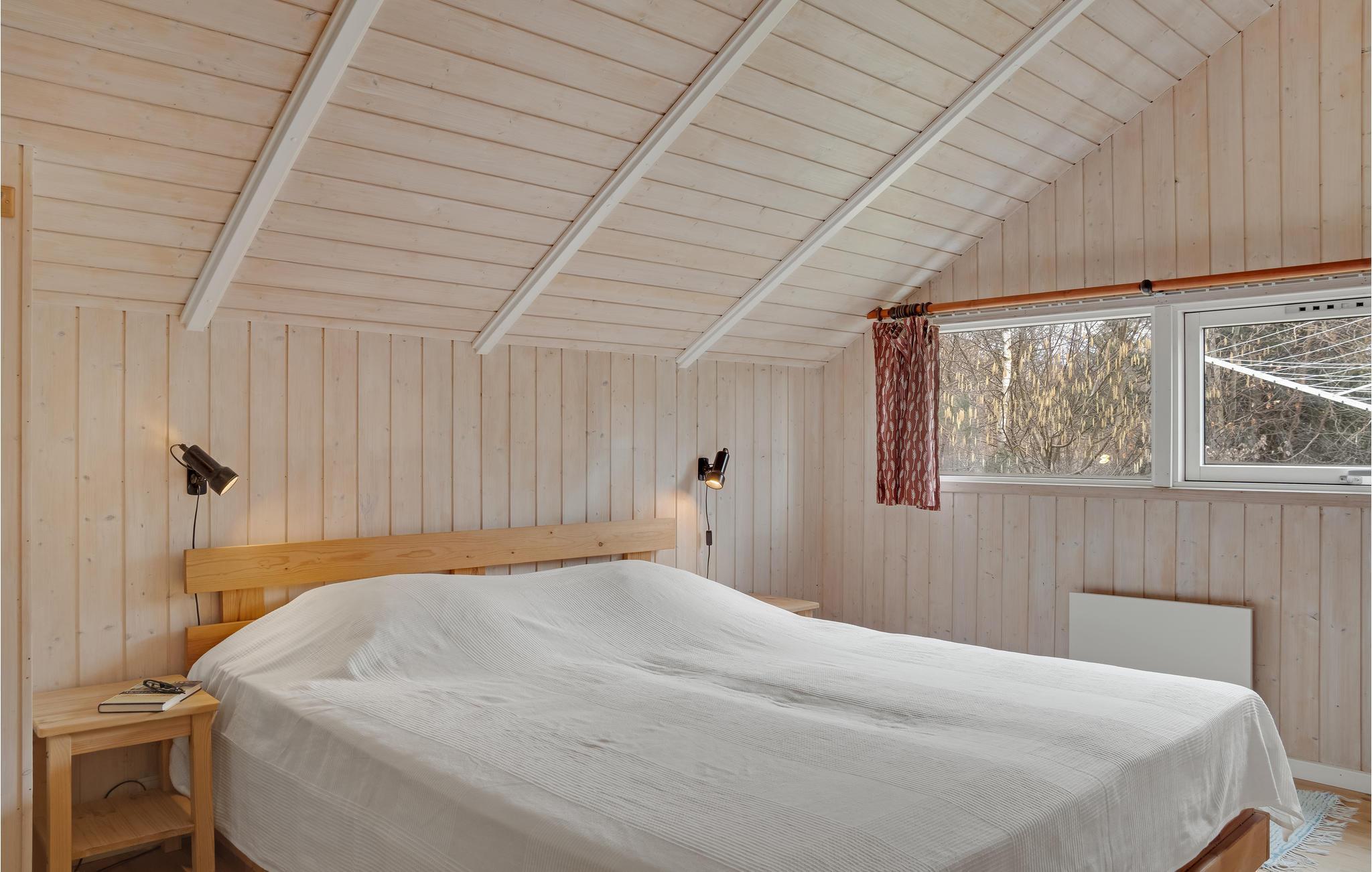 Høje træer, lys, luft og kort afstand til stranden. Dette fine sommerhus har de skønneste omgivelser. Her kan I fylde dagene med friske gåture og vende hjem til det hyggelige hus og lade op til flere gode oplevelser. Sæt jer med dagens måltider og nyd udsigten til den grønne grund. Efter en lang dag på farten, kan I få varmen i saunaen eller tænde op i brændeovnen og hygge jer med bøger og brætspil.
