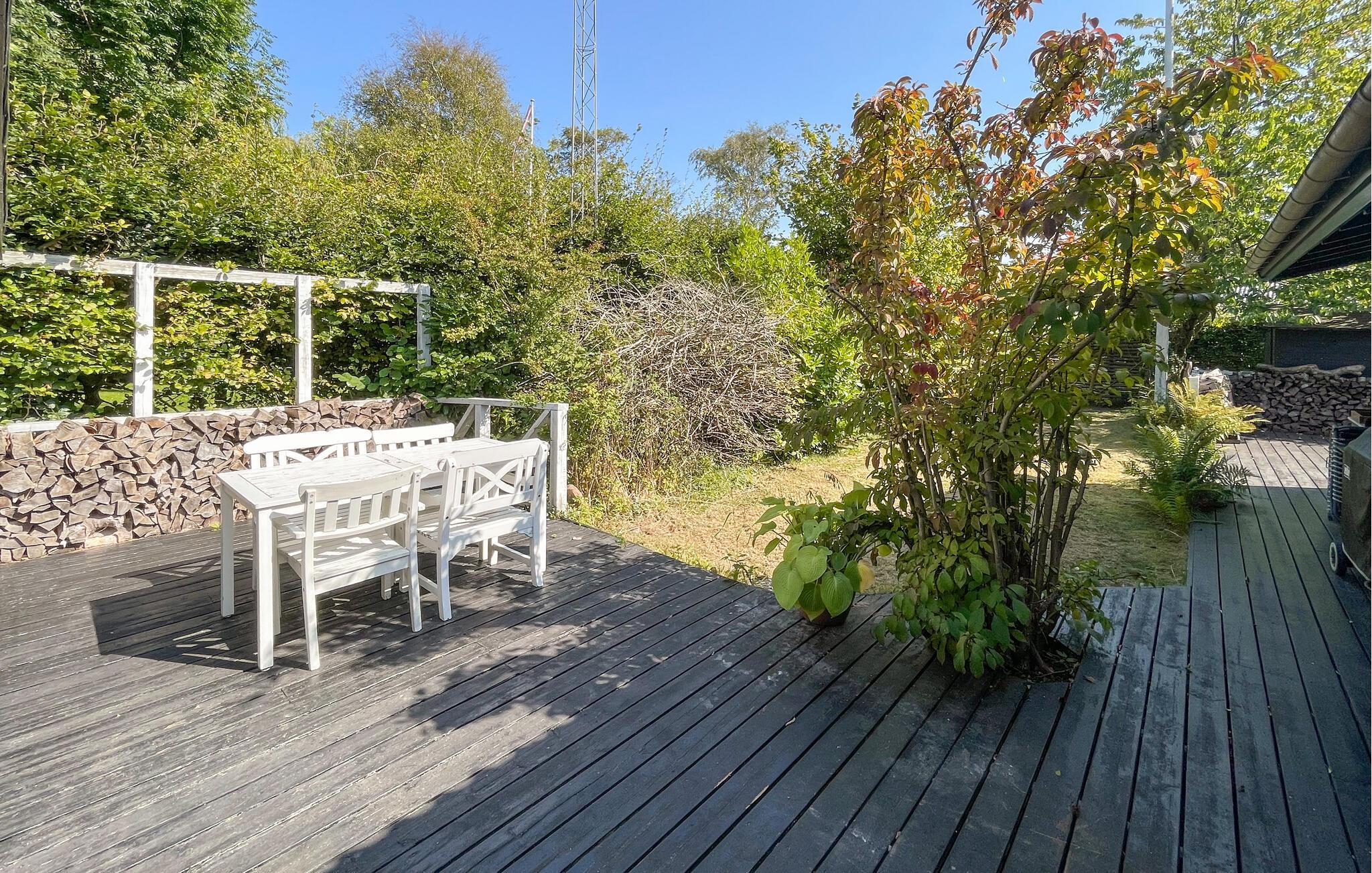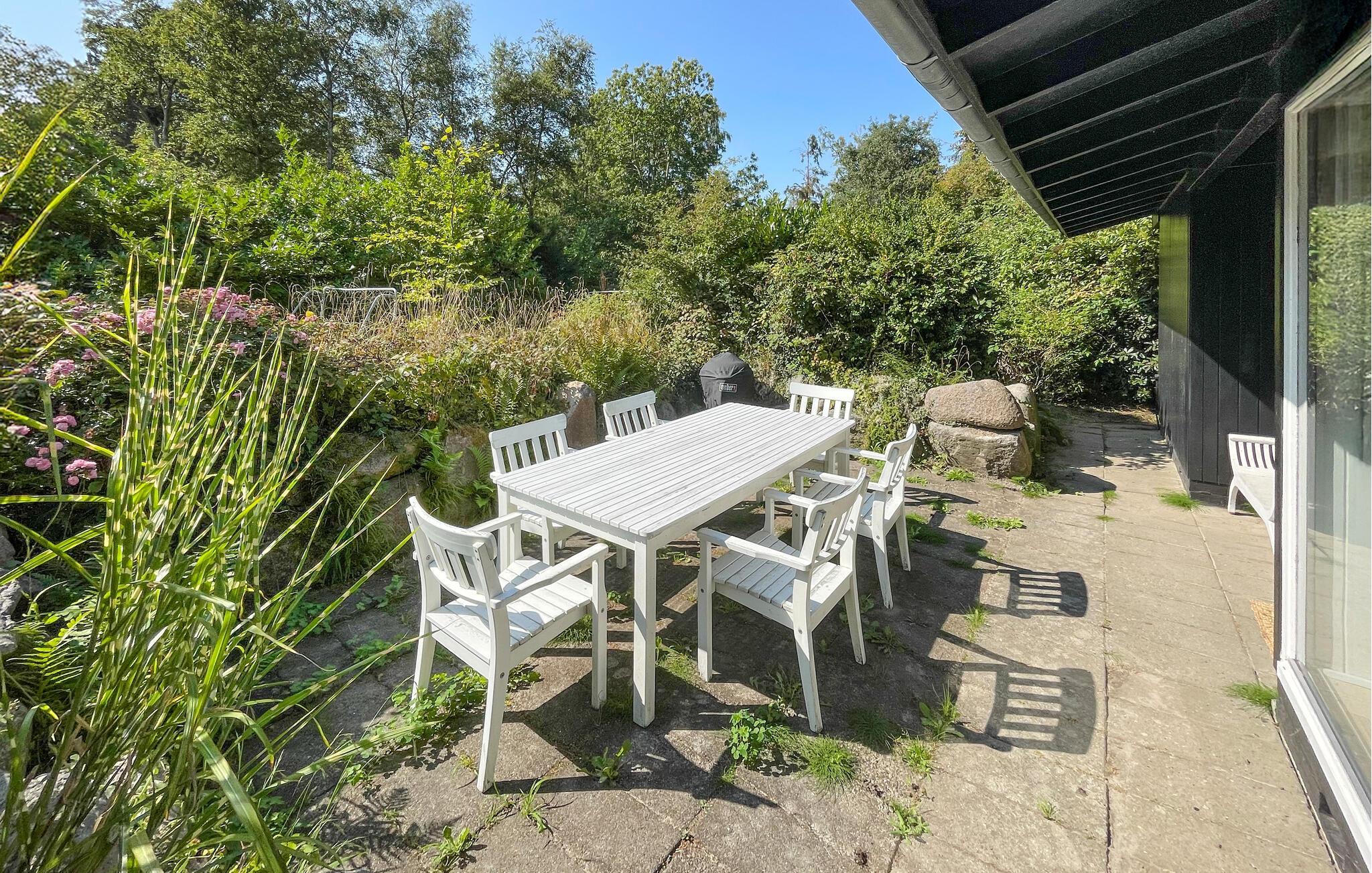 Huset tilbyder også dejlige muligheder for at slappe af udenfor. Om aftenen kan I nyde et frisk tilberedt grillmåltid udendørs.