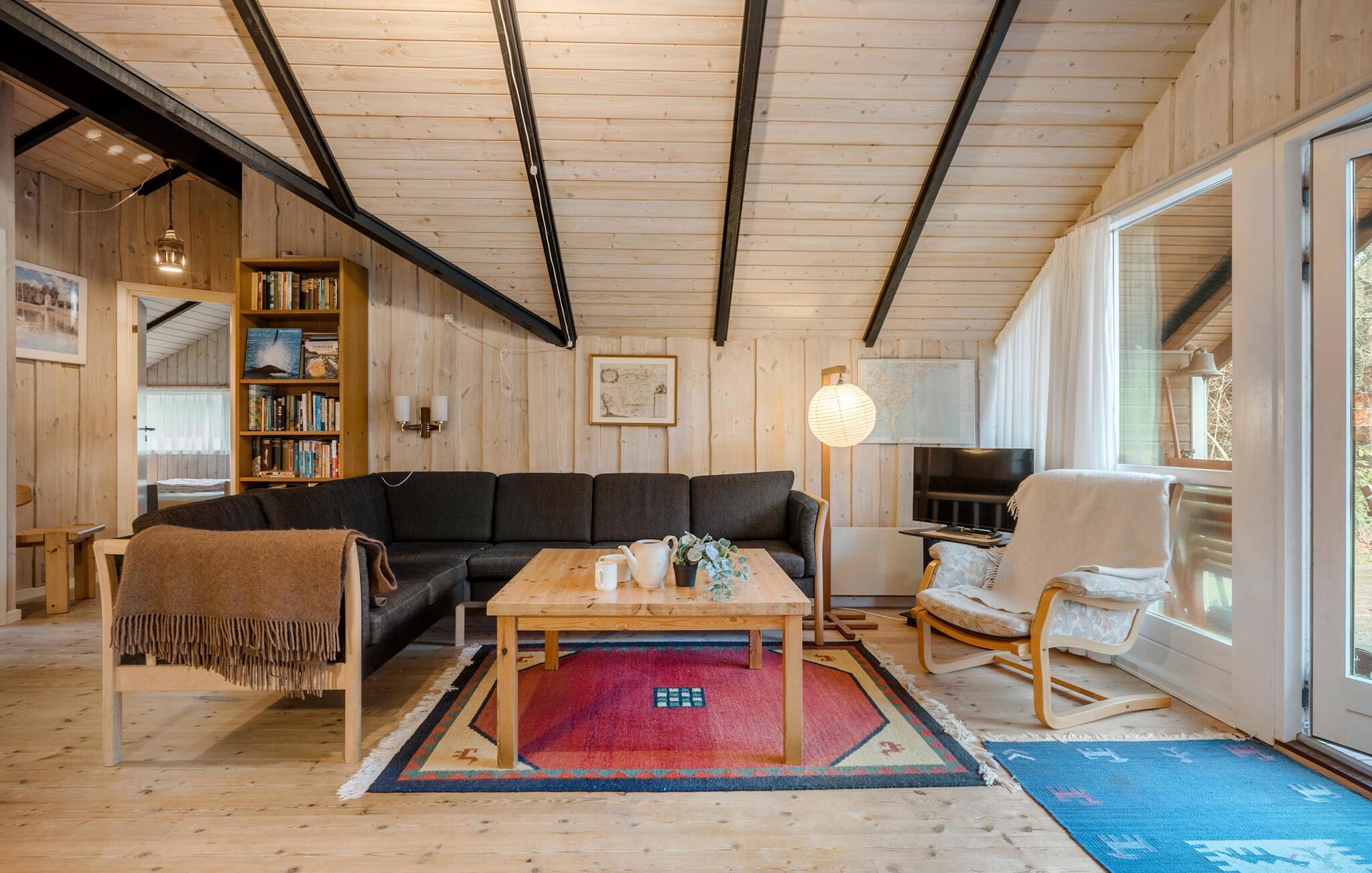 Hyggeligt træhus nær Gedesbys sandstrand med sauna, brændeovn og stor naturgrund for afslapning og oplevelser.