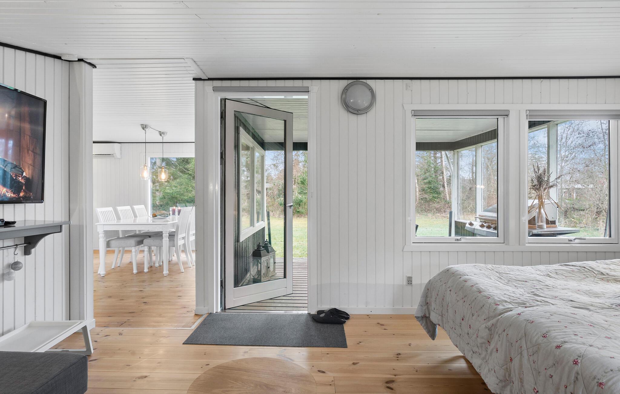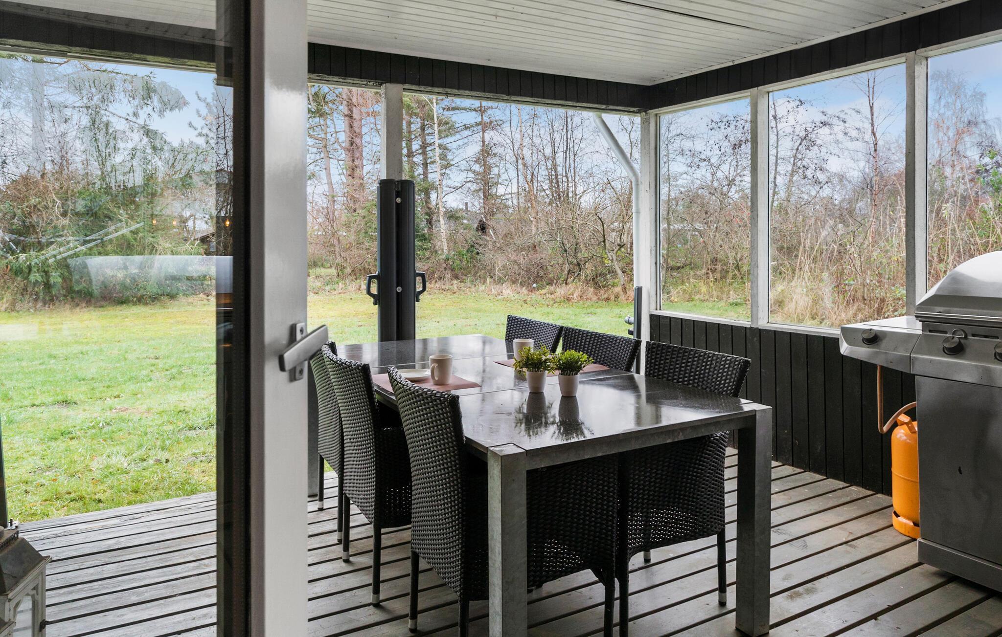 Hold en afslappende ferie i et lyst sommerhus med veranda og stor have.