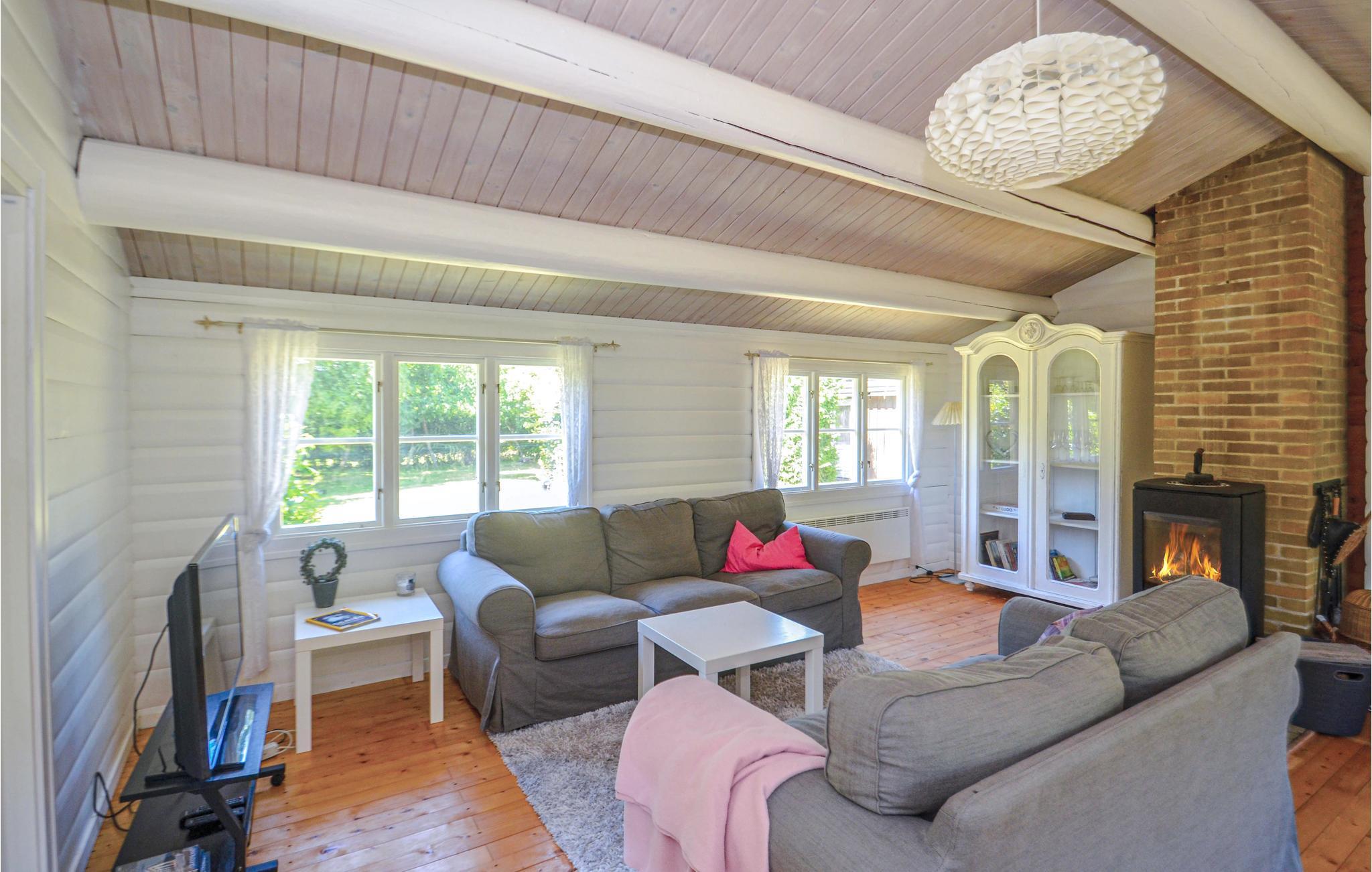 Drømmer I om sommerhusidyl og nærhed til den mest fantastiske sandstrand, så finder I et godt bud her. I 2. række til stranden ligger dette skønne bjælkehus med græs på taget og på en dejlig, lukket havegrund. Huset er indrettet med et hyggeligt køkken med spisekrog, badeværelse, to soveværelser samt en stue med bl.a. brændeovn. Fra stuen er der udgang til den overdækkede terrasse og den skønne have. I forbindelse med annekset er der også en carport til bilen. Kort sagt et skønt sommerhus til en skøn sommerferie.