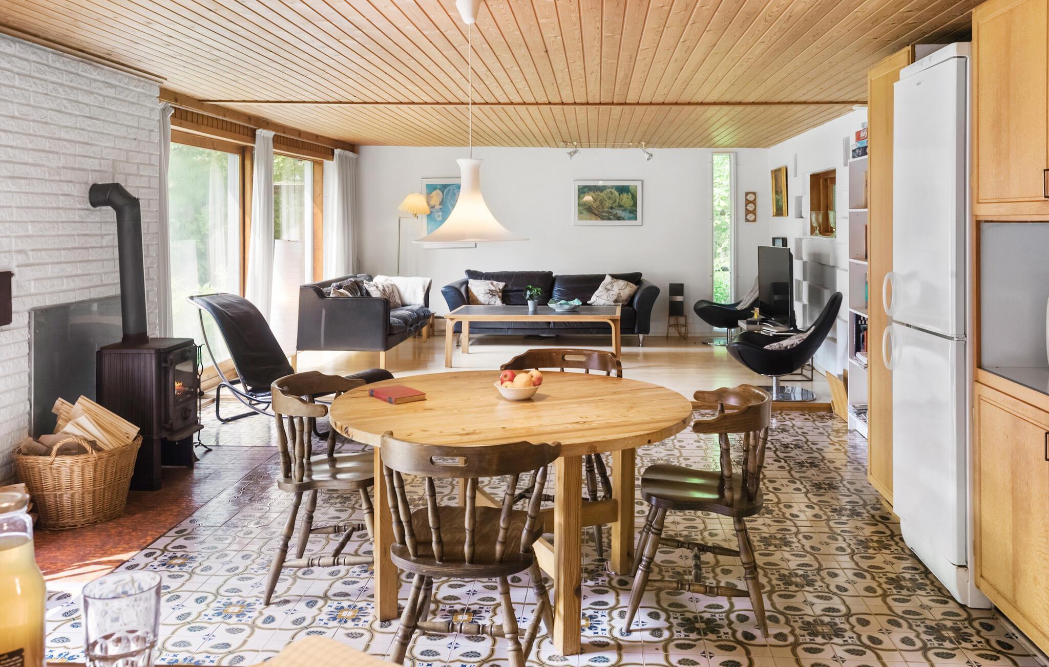 I det idylliske Gedesby finder du dette rummelige sommerhus opført i sten. Her er masser af plads og en hyggelig havegrund at boltre sig på. På terrassen kan du nyde solens stråler og tænde grillen, når de lækre feriemåltider skal tilberedes. Hold øje med de mange gårdbutikker, hvor I kan købe lokalprodukter der lige er plukket eller trukket op ad jorden. Et fint supplement til den hjemmefangede fisk! Gedesbys sandstrand er på 25 km og regnes som en af Danmarks fineste strande. Pak badetøj og sandlegetøj og nyd en lang dag i sandet, her er det også muligt at finde rav, så kig godt efter hvad der ligger i brændingen, når I går en tur langs vandet.