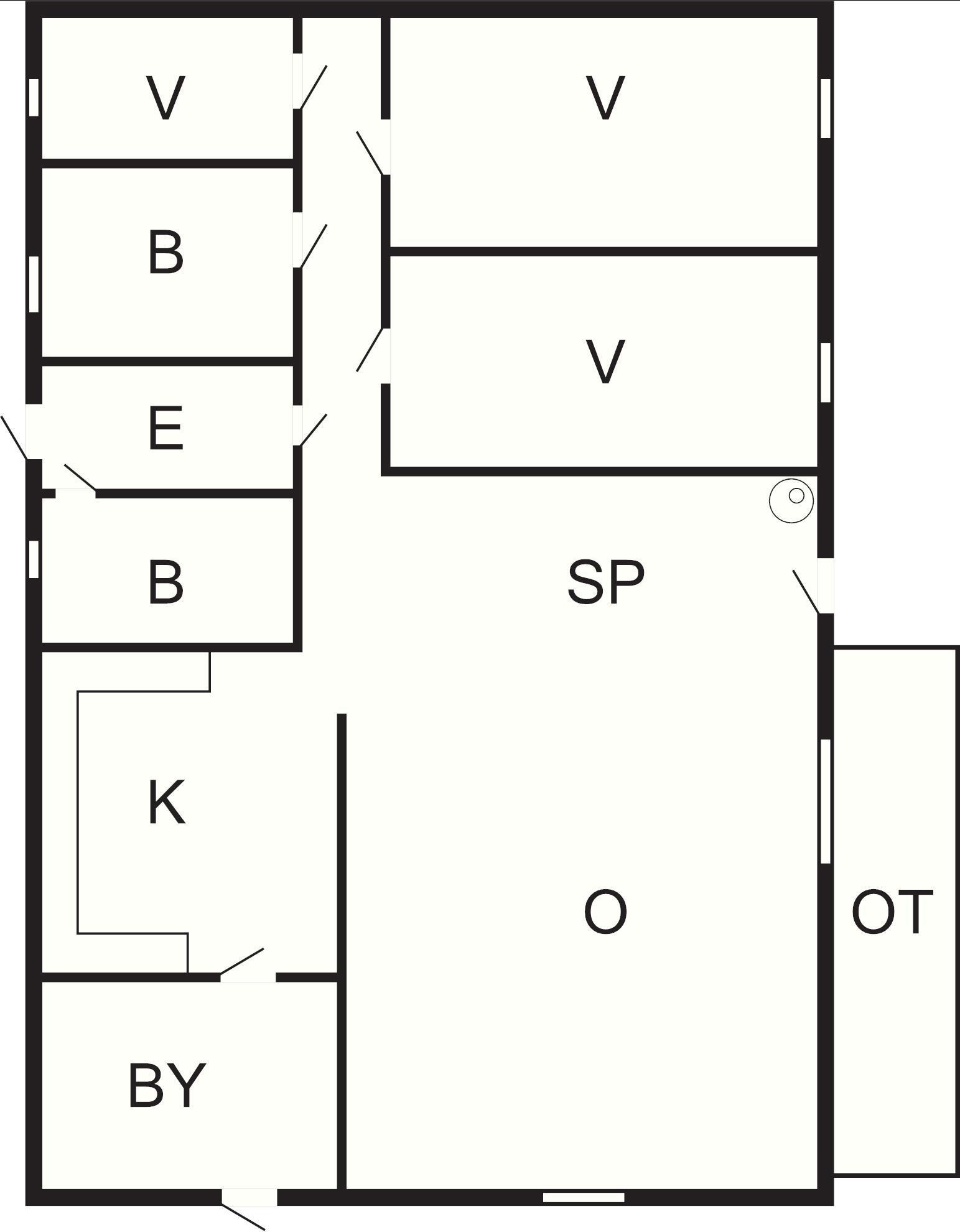 3 Soveværelser: (1DS)+(2S)+(2S), barneseng