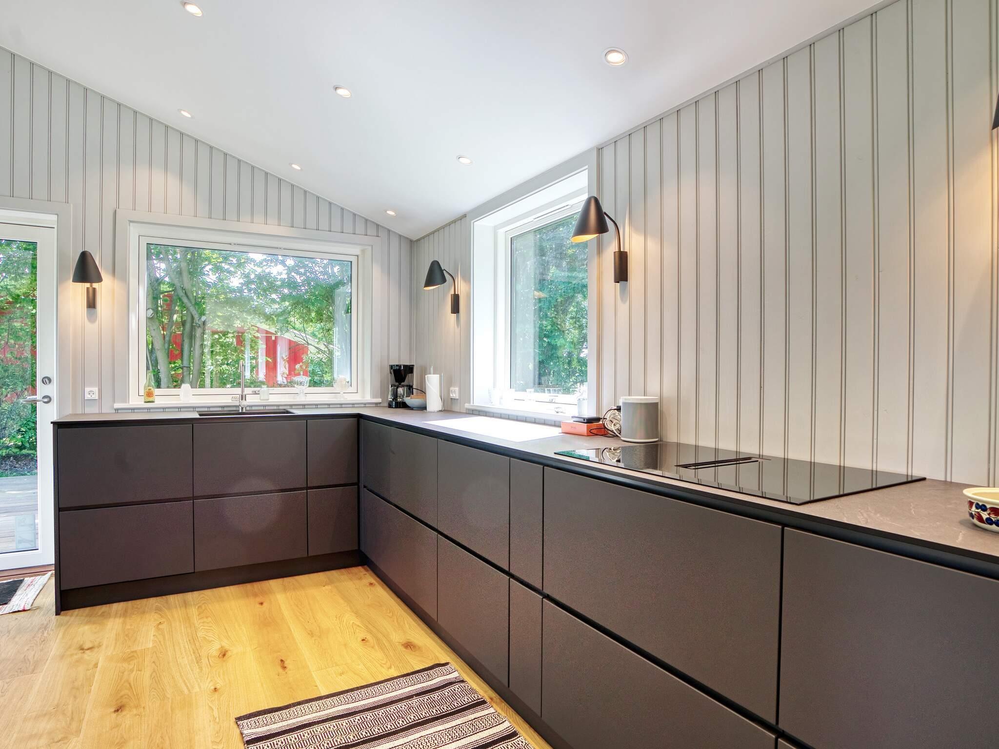 Gemt tæt på den charmerende ferieby Gilleleje tilbyder dette moderne feriehus den perfekte balance mellem komfort, stil og hygge. Indenfor indbyder et lyst køkken i åbent plan til at lave mad og dele måltider sammen, udstyret med alt fra induktionskomfur med indbygget emhætte til ovn, mikroovn, opvaskemaskine og kaffemaskine. Stuen er et varmt tilflugtssted med sin brændeovn, tv med Chromecast, Wi-Fi og en lun alkove, der gør det perfekte læse- eller lurhjørne.