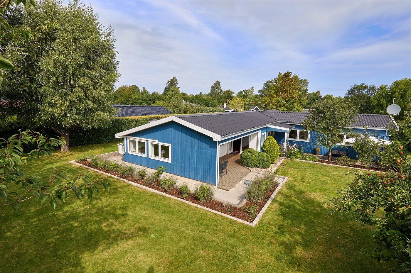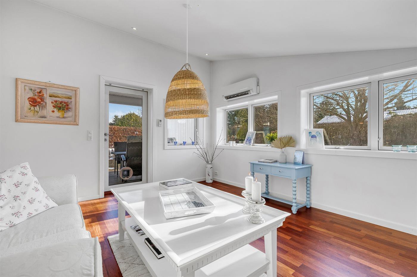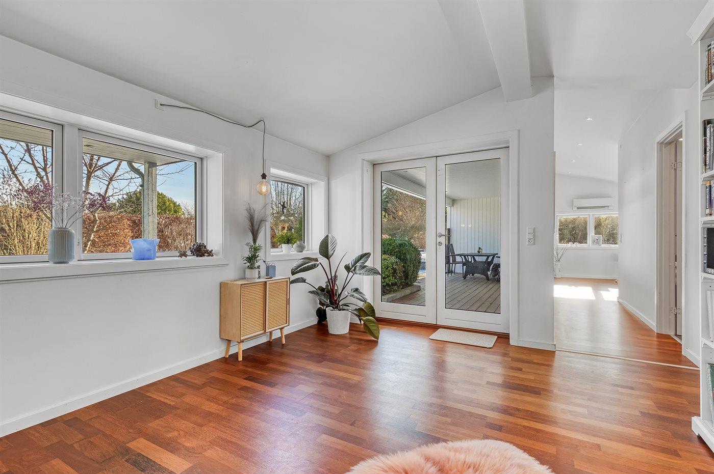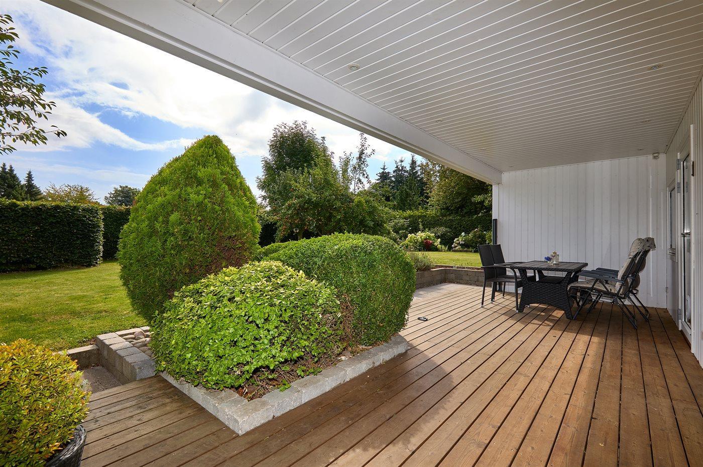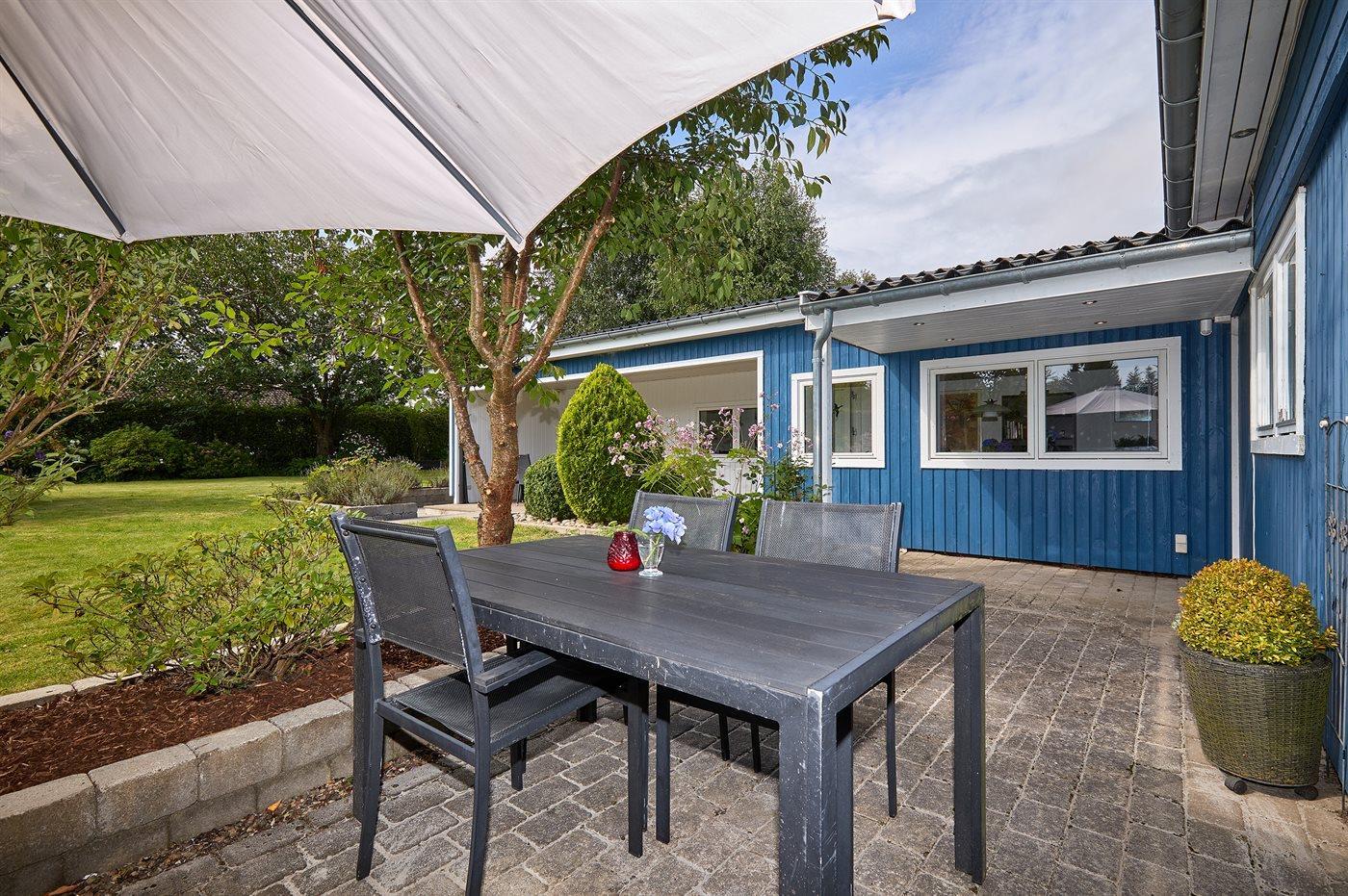 Det store, lyse og rummelige sommerhus ligger på en grund med gode udeområder, flere terrasser og en dejlig, rolig have.