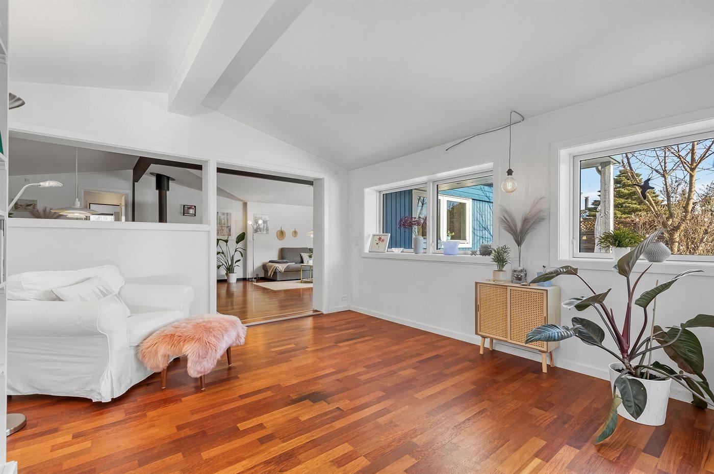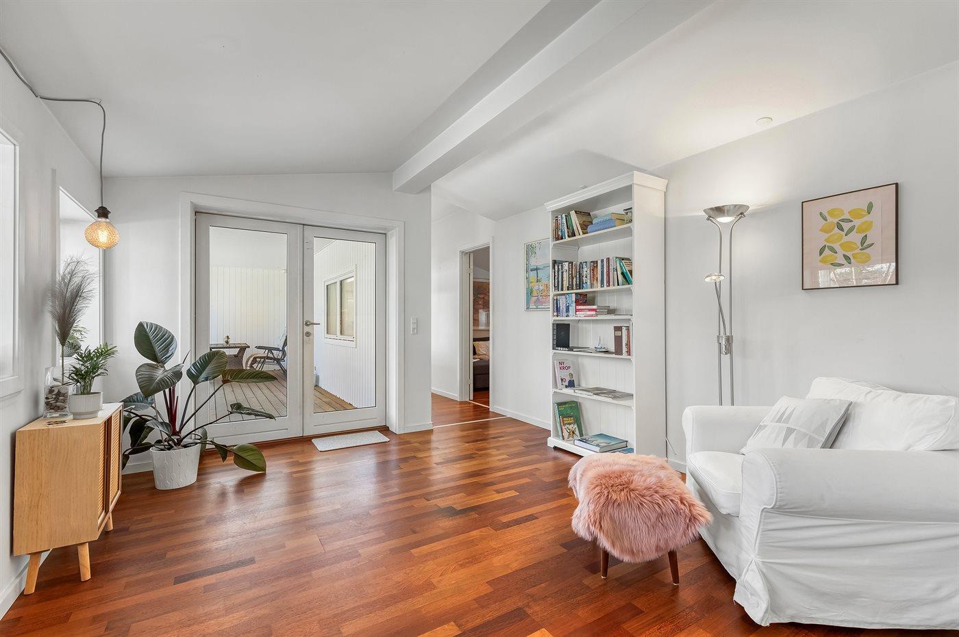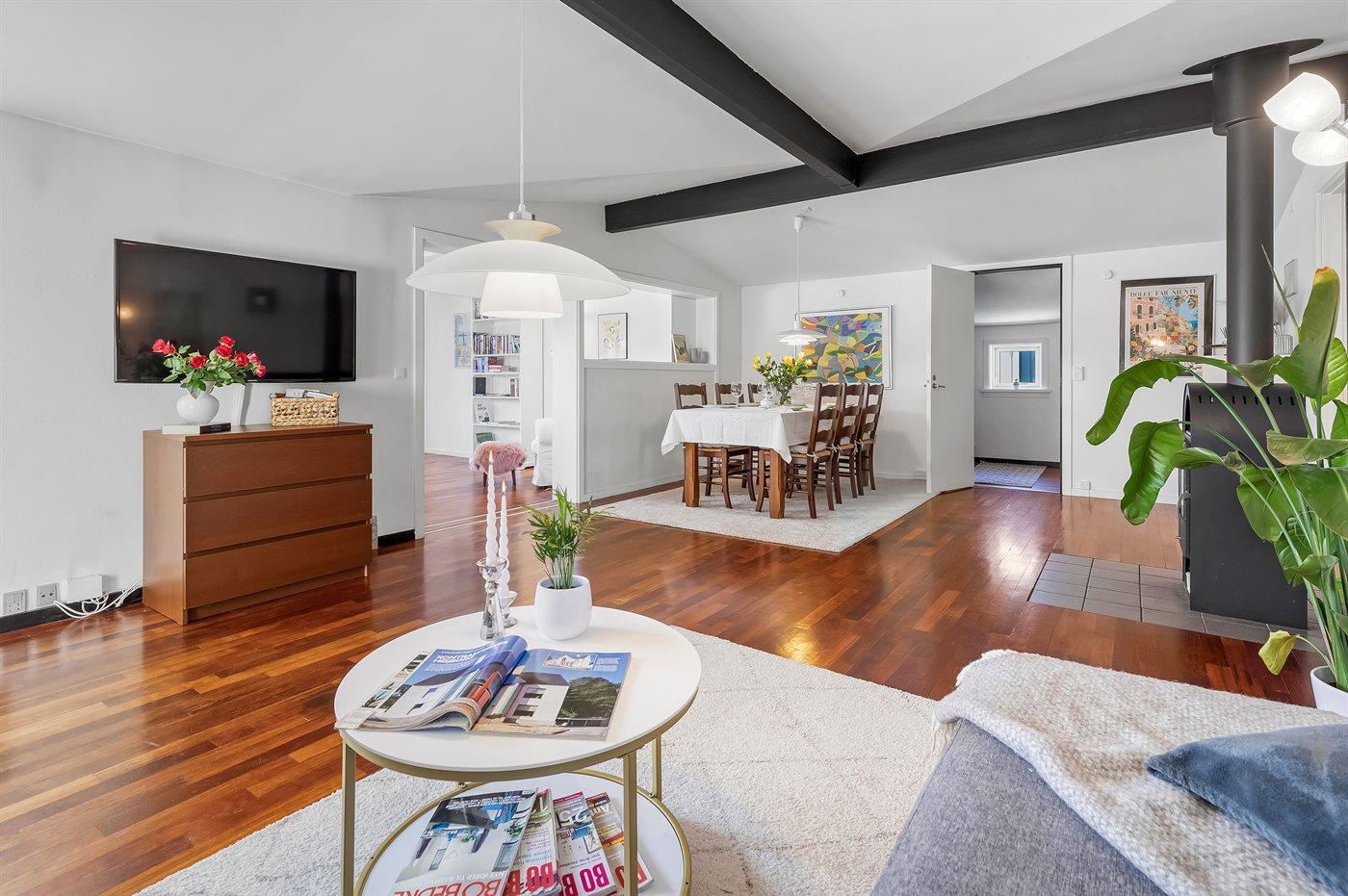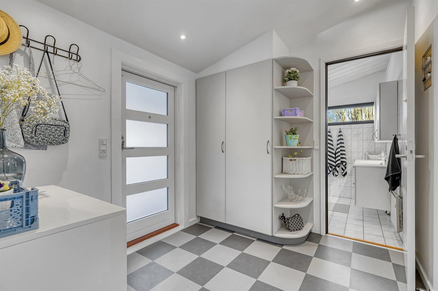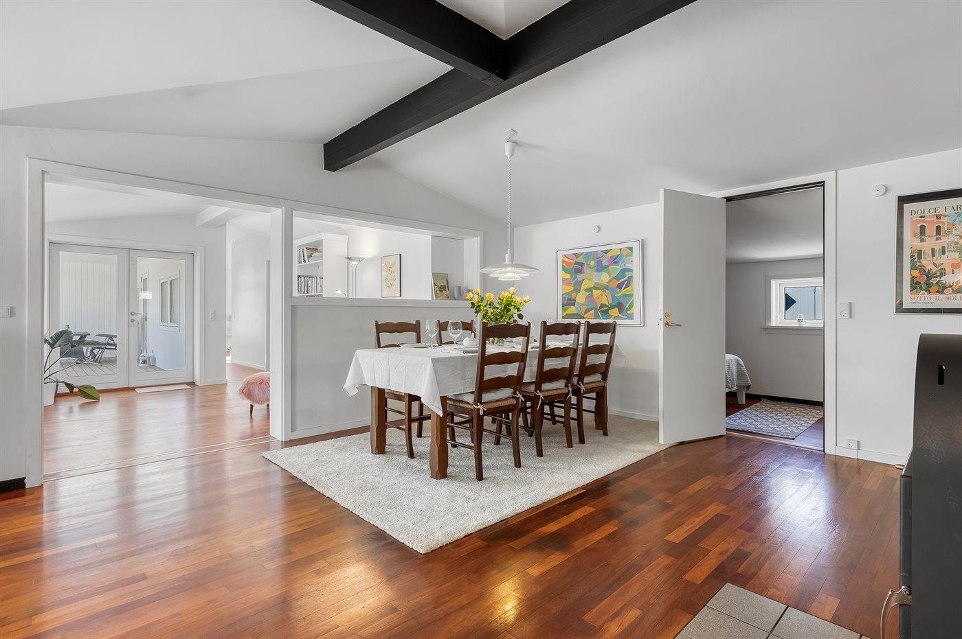 Det store, lyse og rummelige sommerhus ligger på en grund med gode udeområder, flere terrasser og en dejlig, rolig have.