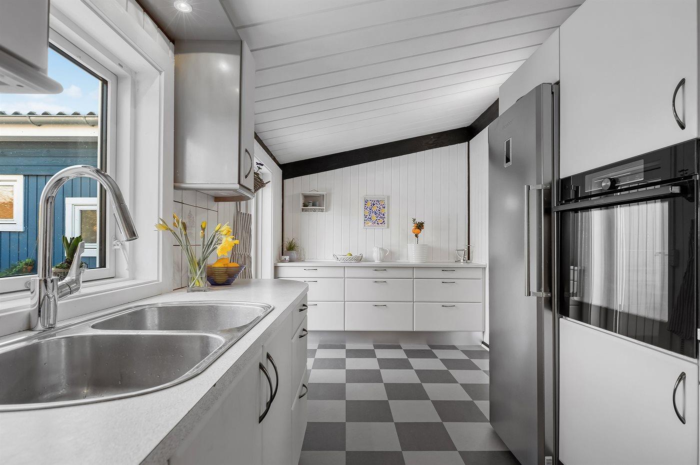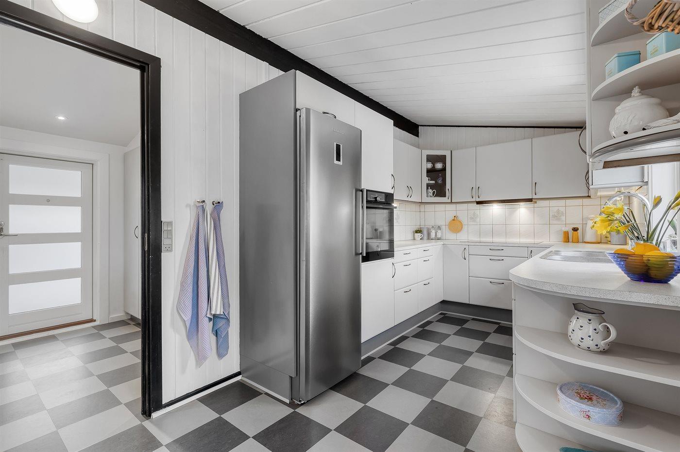 Køkkenet er udstyret med 1 køleskab. Der er 4 induktionskogeplader, varmluftovn, mikrobølgeovn samt opvaskemaskine.