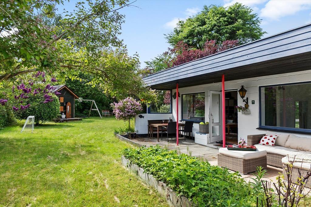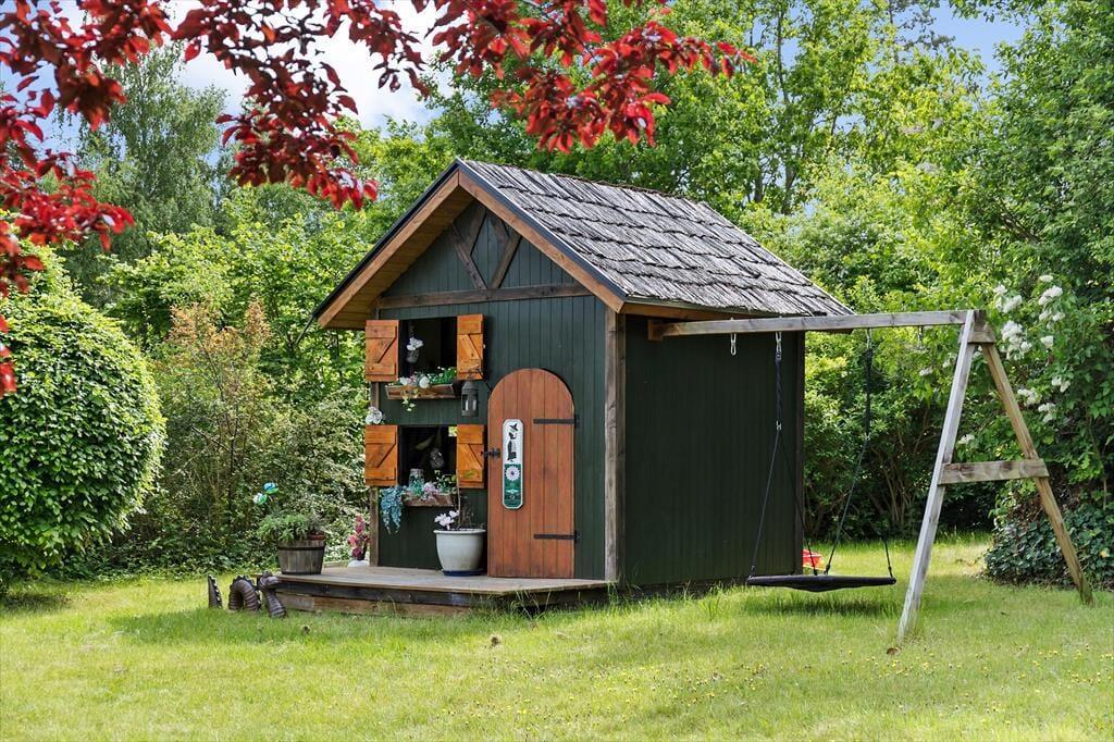 Grunden omkring huset er et lille eventyr i sig selv. Haven er frodig og indrammet af buskads, som skaber en hyggelig oase, hvor man kan sidde ugeneret på terrassen og nyde en stille morgenkaffe eller en lang sommeraften med grill og latter. For børnene er haven et sandt paradis. Det store legehus i to etager indbyder til fantasifulde lege, og her kan selv de voksne være med. Der er både gynger, trampolin, sandkasse og endda en bålplads, hvor I sammen kan bage snobrød og riste skumfiduser, mens mørket falder på. Her kan hver dag føles som en ny opdagelse, hvor græs under tæerne og jord på fingrene bliver en naturlig del af ferien.