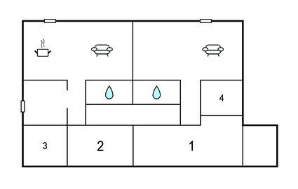 Opholdsstue - 2 Sovepladser. (Sofa, madras eller lignende). 1 Soveplads. (Madras).