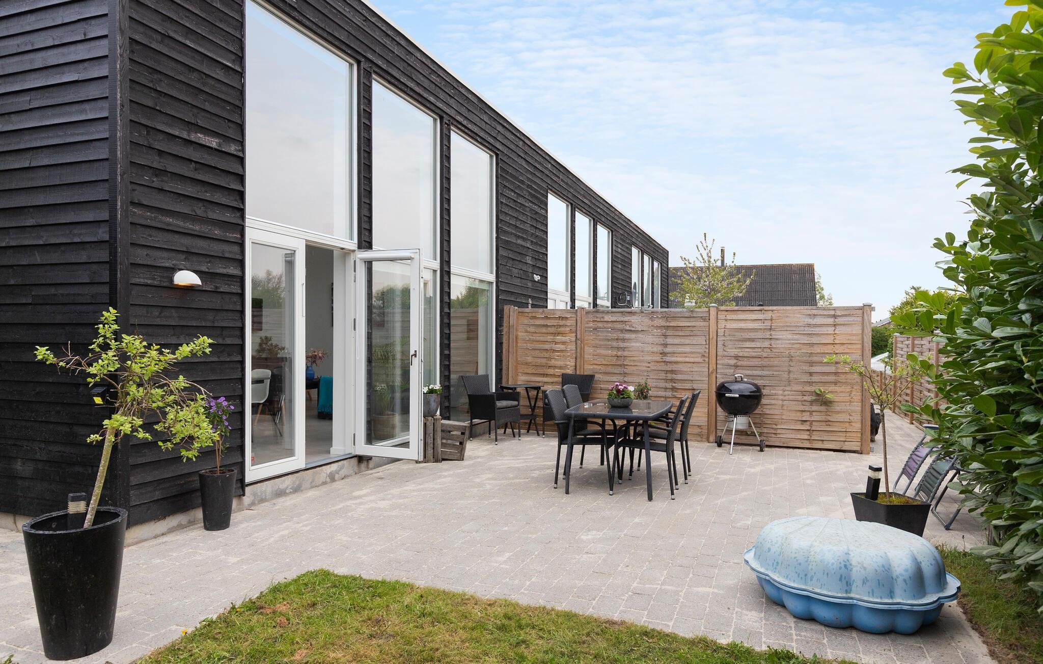 Moderne feriehus med privat terrasse og afskærmet have tæt på Gillelejes strand.