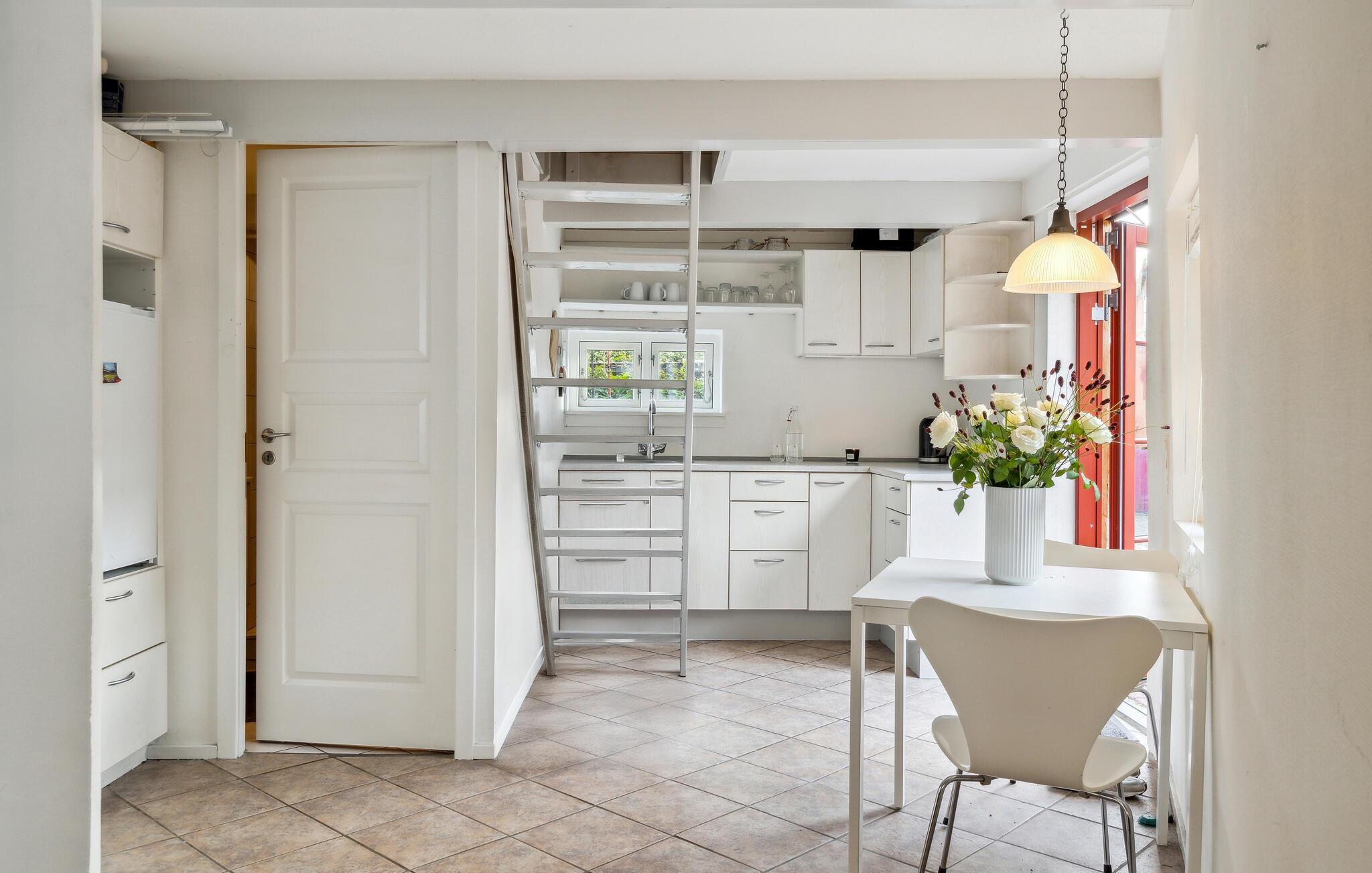 Velkommen til Gilleleje, når det er allerskønnest. I den hyggelige bymidte få hundrede meter fra vandet. Her ligger denne velindrettede lille lejlighed, som giver jer nem adgang til byens tilbud. Boligen er lys og klassisk med gode indretningsløsninger, som giver jer et godt sted at slappe af. Der går en stejl trappe op til loftet, hvor sovepladsen er placeret. Bemærk, at der er lavt til loftet. På solskinsdagene får I et ekstra rum på den private terrasse.