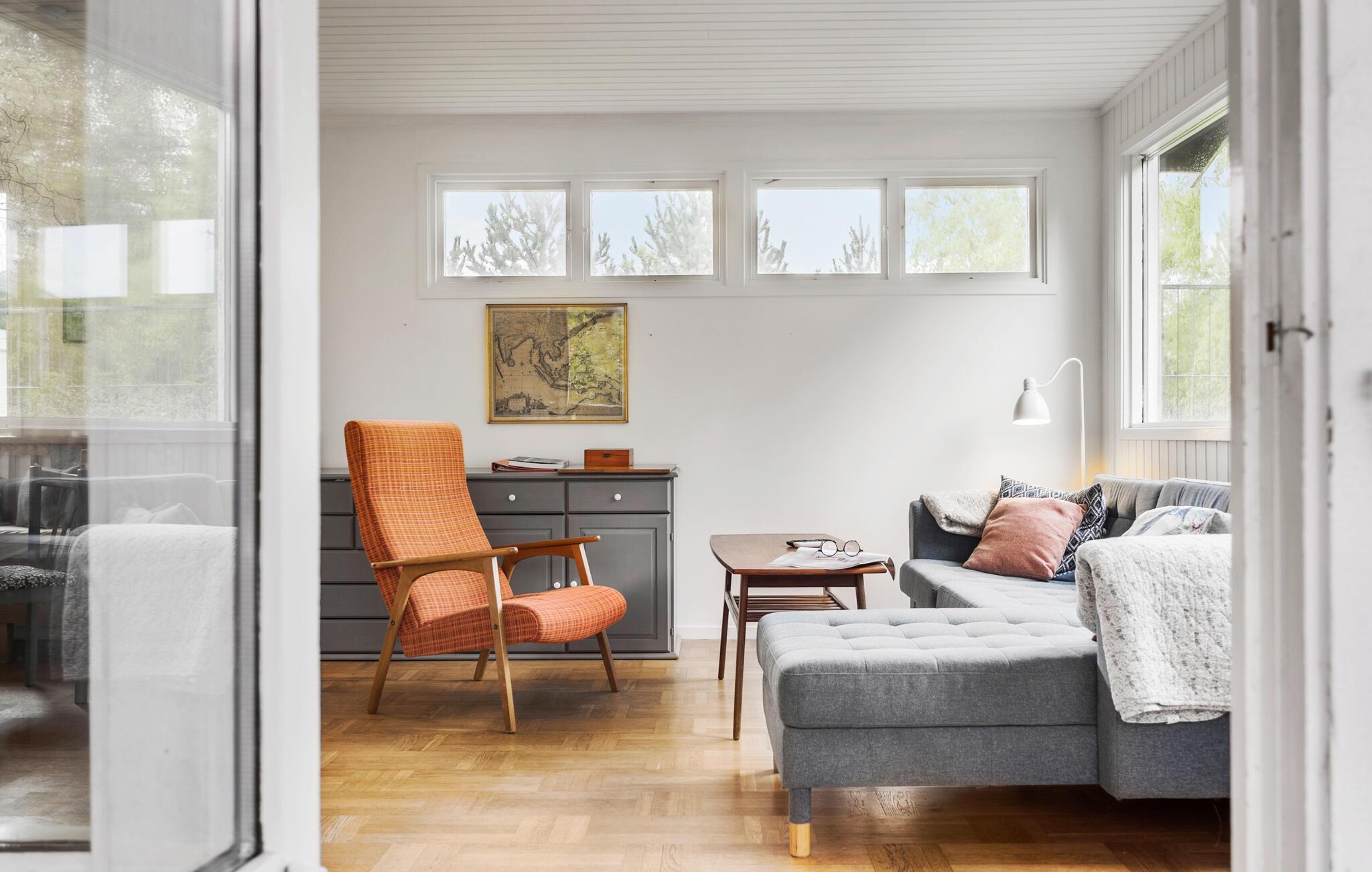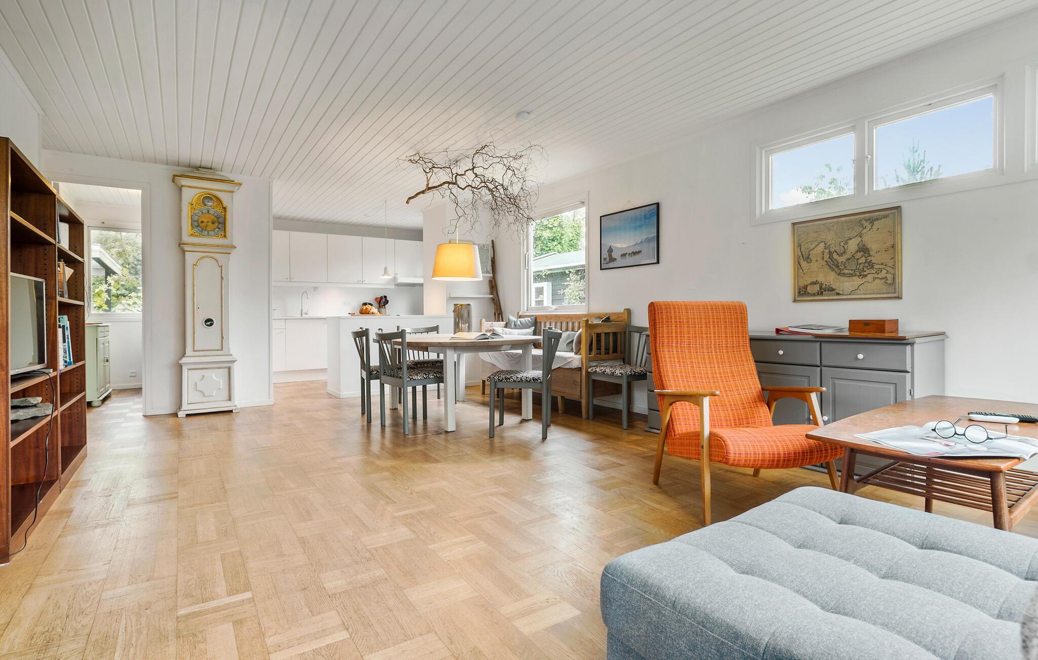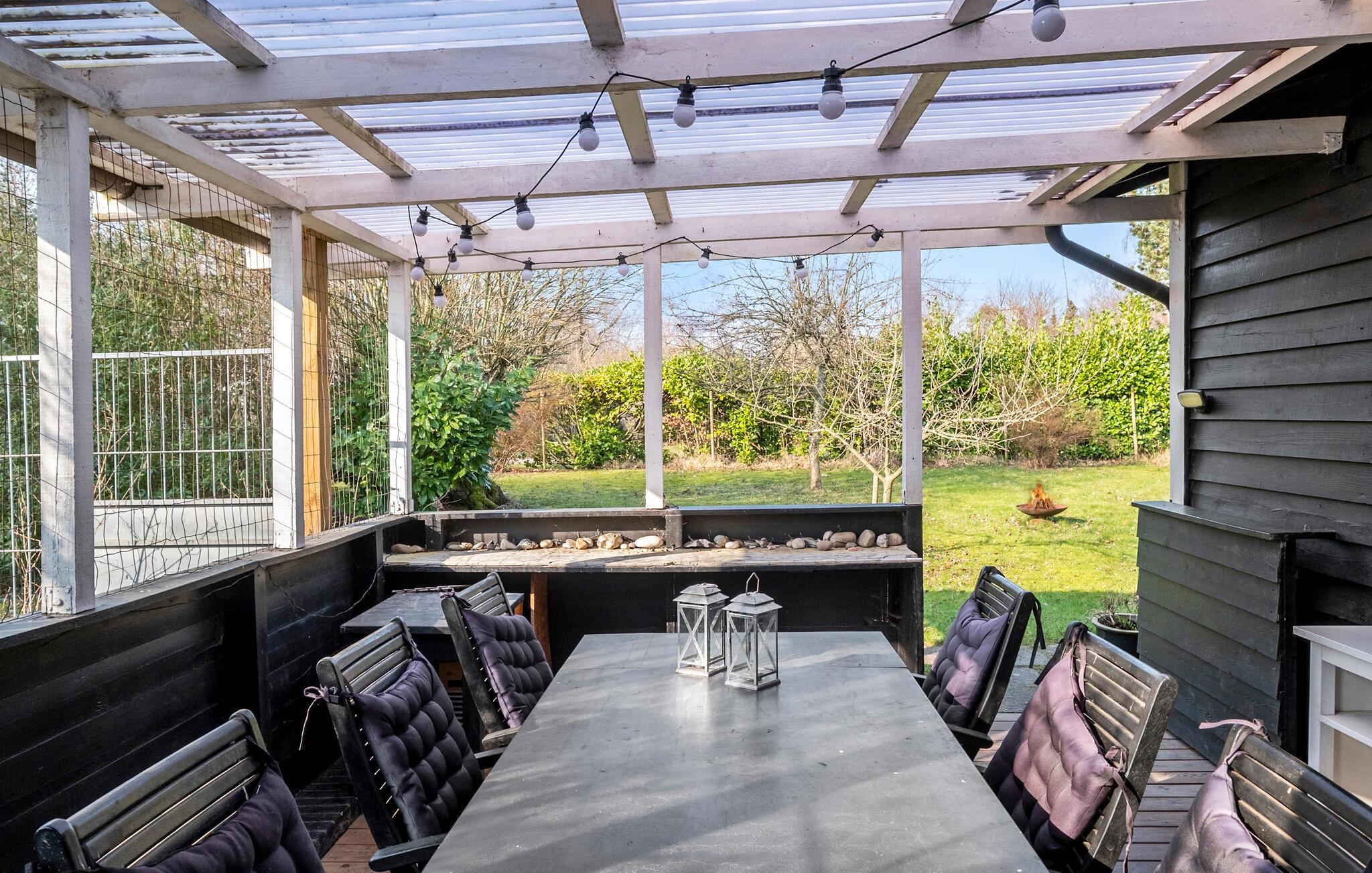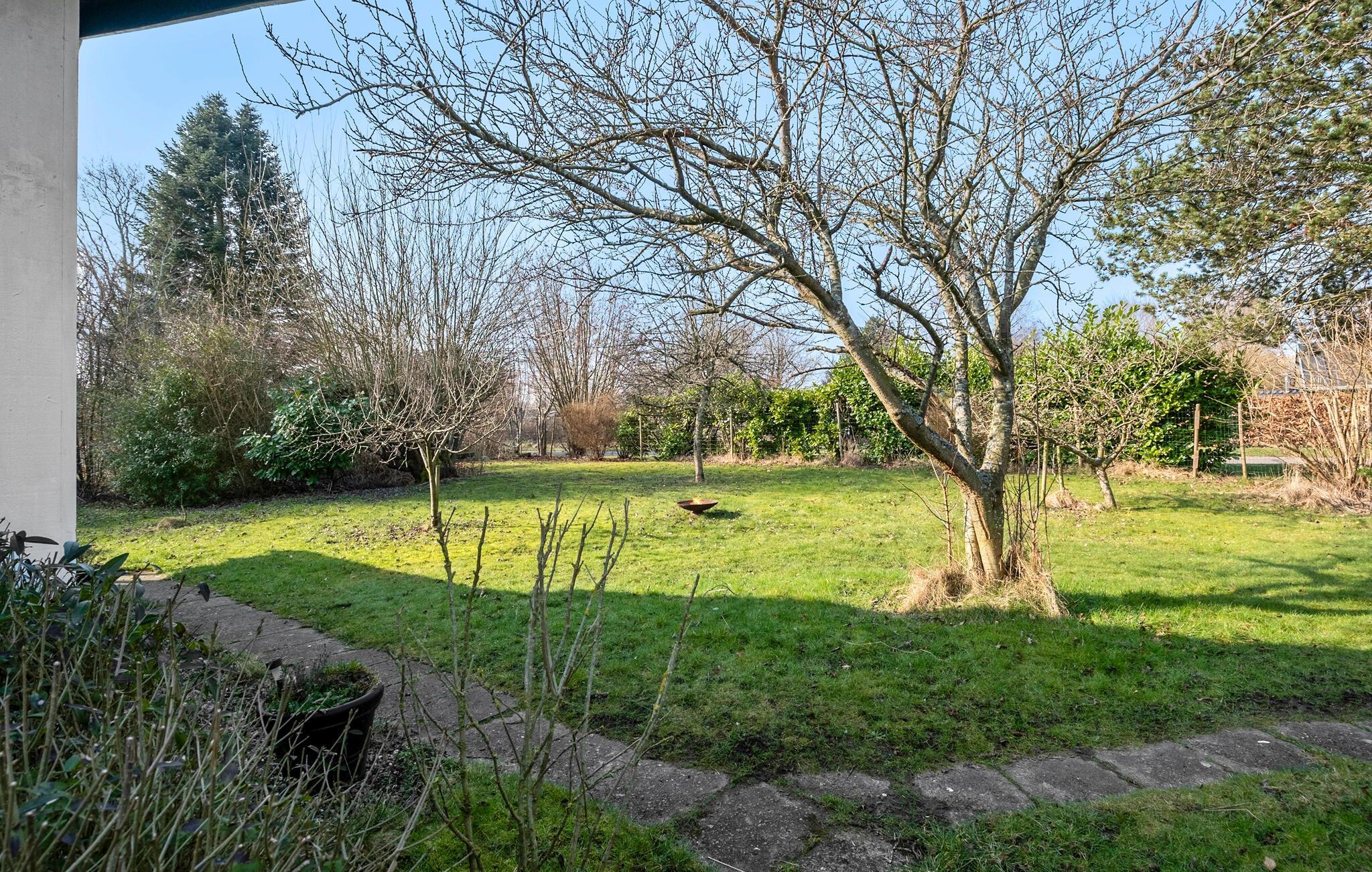 Fra husets opholdsområde får I en vidunderlig udsigt over haven, og I kan se frem til mange hyggelige aftener til lyden af brændeovnens gnitren.