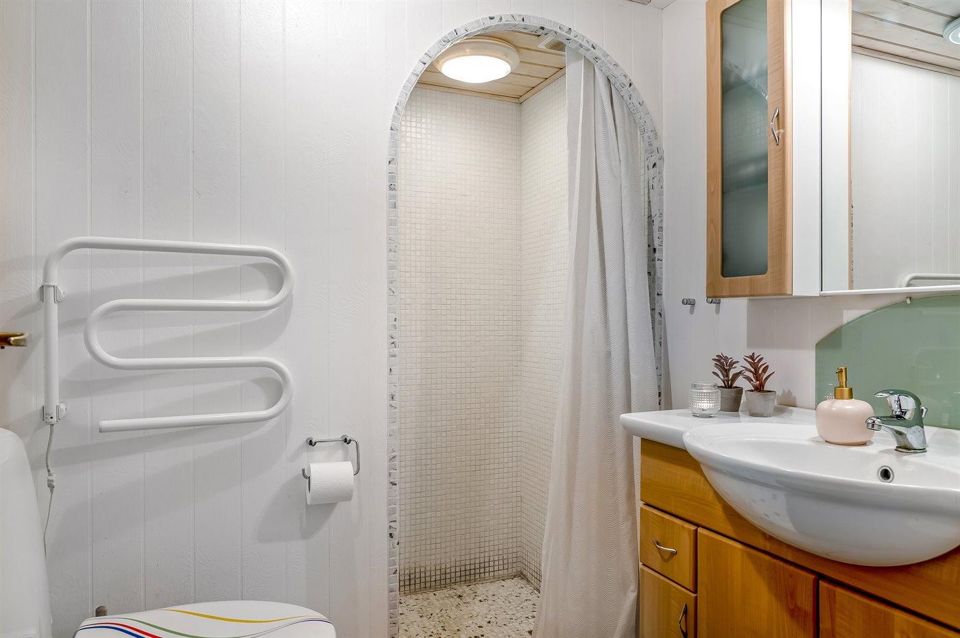 Der er 1 badeværelse med bruseniche og 1 toilet.