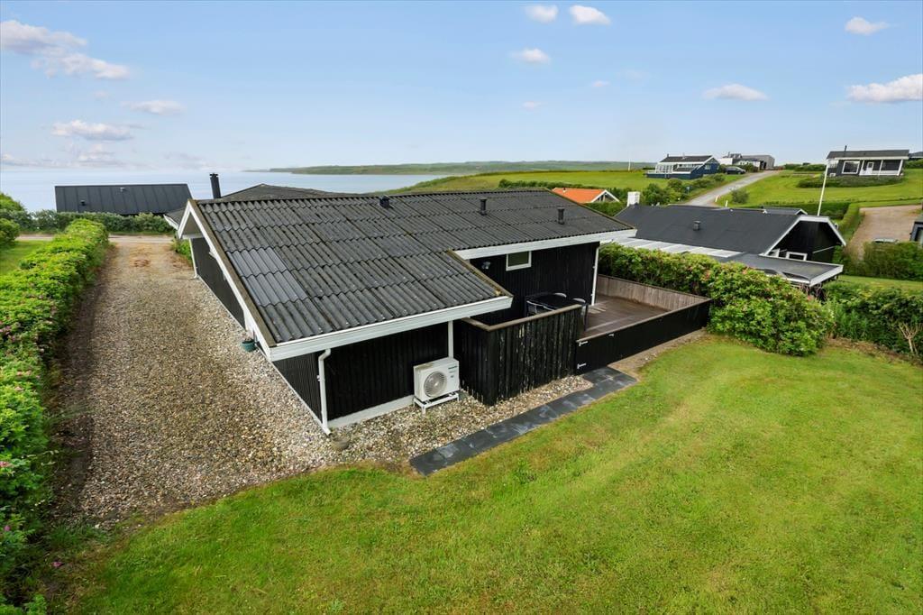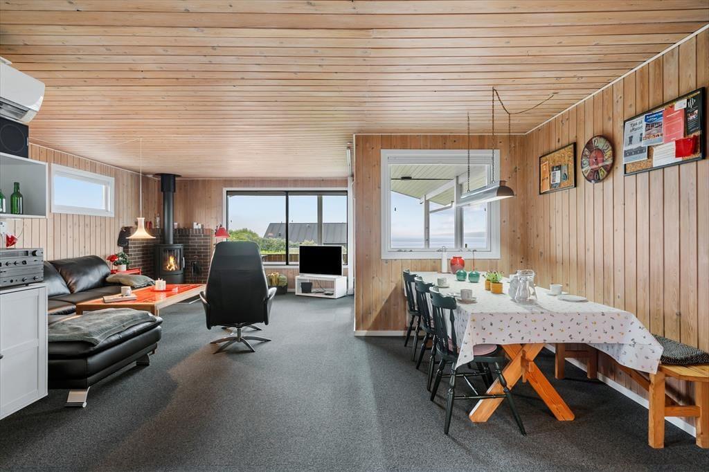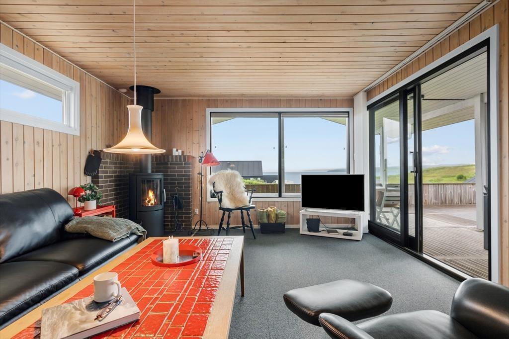 Hvis du drømmer om en ferie, hvor fjordens ro og naturens skønhed bliver en del af hverdagen, er Bellisvej 75 i Gjellerodde et oplagt valg. Dette dejlige sommerhus ligger højt i landskabet og har en fantastisk udsigt over Limfjorden, som du kan nyde fra både husets store vinduer og den terrasse, der næsten går hele vejen rundt. Her er du kun 150 meter fra vandkanten, og med masser af plads udenfor og en skøn atmosfære indenfor er rammen sat for afslappede og nærværende feriedage.