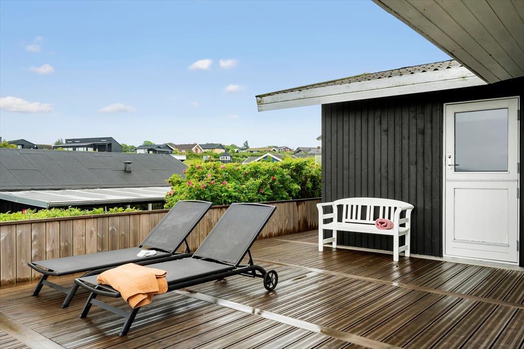 På den store, kuperede grund er der rig mulighed for at finde sin egen lille plet til afslapning eller leg. Uanset hvor solen står, er der næsten altid et godt hjørne at slå sig ned i på den rummelige terrasse, som går næsten hele vejen rundt om huset. Her kan du nyde dagens måltider i det fri, tage en stille stund med kaffe og udsigt – eller måske bare læne dig tilbage og mærke sommerbrisen i ansigtet. For børnene indbyder haven til leg på skrænterne og små eventyr i det grønne, og fjorden lokker kun få skridt væk med vandpjask og sandslotte. Bellisvej 75 ligger tilbagetrukket i sommerhusområdet og samtidig højt i landskabet, så du kan nyde roen og udsigten, helt uden at føle dig afskåret fra alt det, der gør ferie i Gjellerodde til noget særligt.