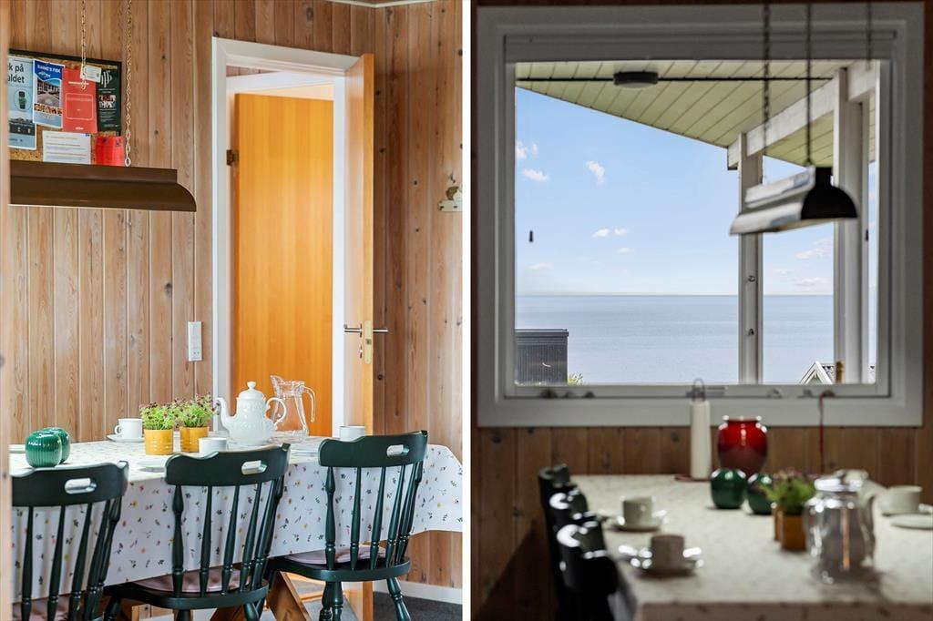 Når du træder ind i sommerhuset på Bellisvej 75, mærker du straks en stemning af ro og komfort. Den lyse og venlige indretning indbyder til hyggelige stunder med familien eller gode venner, og her er plads nok til, at alle kan finde sig til rette. Køkken og stue ligger i åben forbindelse og skaber et naturligt samlingspunkt, hvor du kan snakke og lave mad i fællesskab, mens børnene spiller kort ved spisebordet eller slænger sig i sofaen med en bog. Store vinduespartier sørger for masser af lys og giver samtidig en betagende udsigt over fjorden, som skifter udtryk dagen igennem – fra morgenens blide dis til aftenens gyldne solstrejf. Uanset om I kommer for at være sammen eller hver for sig, giver husets planløsning mulighed for begge dele.