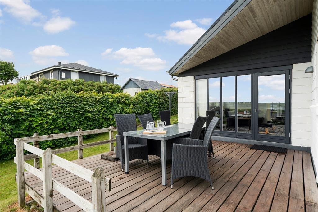 Udendørs venter to dejlige terrasser, som giver dig friheden til at vælge netop det spot, der passer til solens gang og vindens retning. Den ene terrasse ligger i læ og er oplagt til hyggelige morgenmåltider, mens den anden inviterer til afslapning i solen med fjorden som bagtæppe. Her kan du slå dig ned med en bog, nyde fuglesangen i de rolige omgivelser eller tilberede aftenens måltid under åben himmel. Hunden vil elske at snuse rundt i de grønne omgivelser, og for de mindste er der rig mulighed for at lege frit og trygt. Med kort afstand til stranden er det oplagt at tage en hurtig dukkert i det klare fjordvand eller blot gå en tur langs kysten, mens du nyder udsigten og den friske luft.
