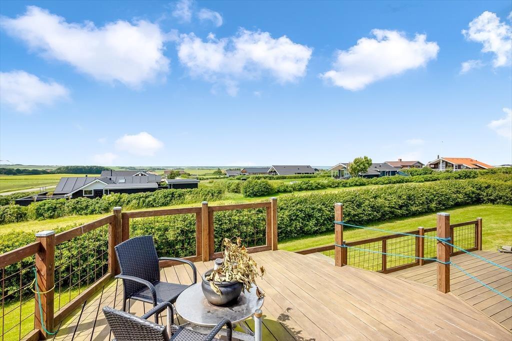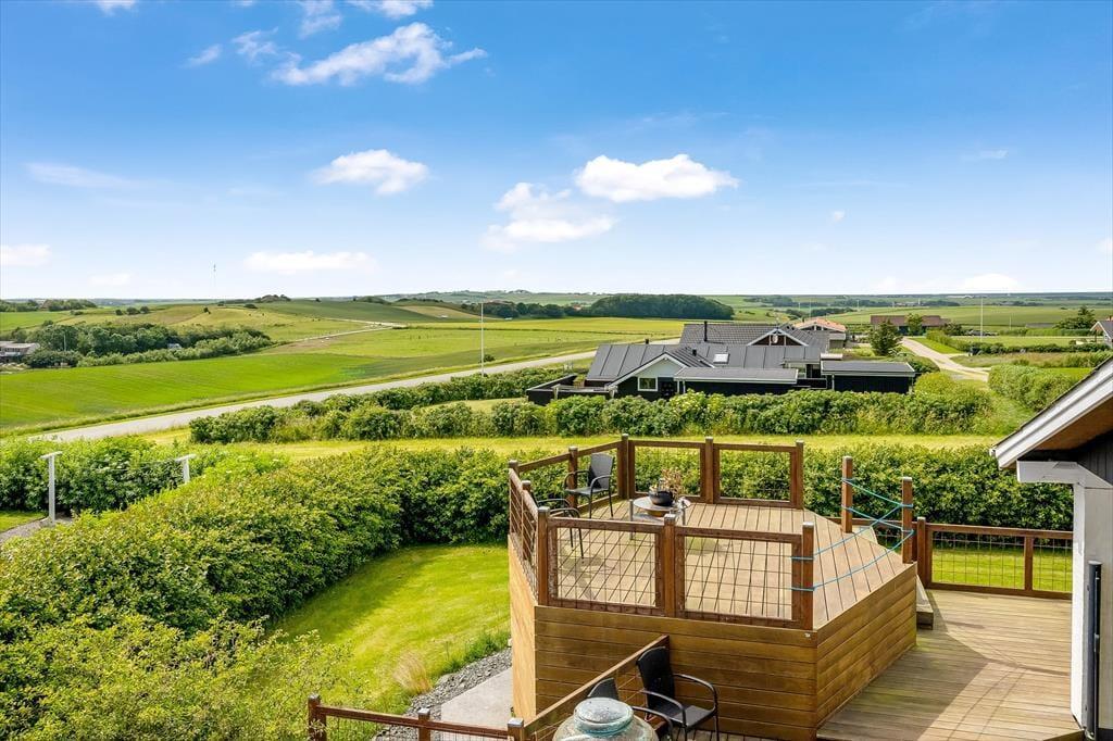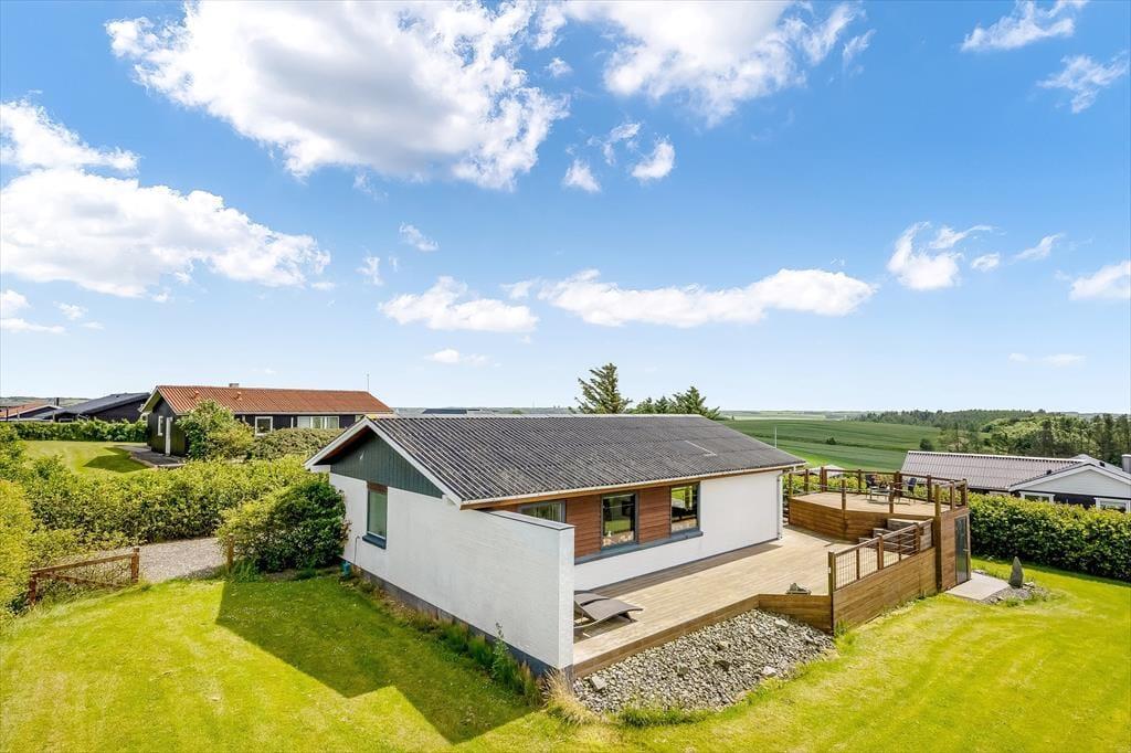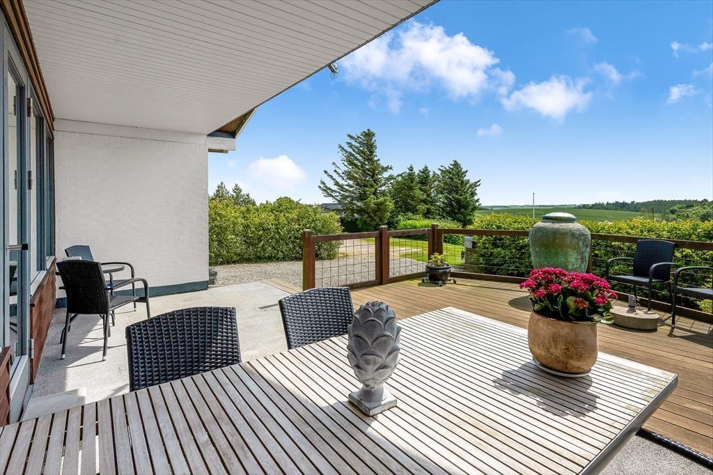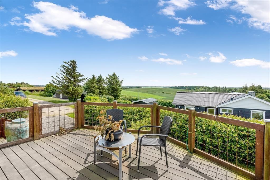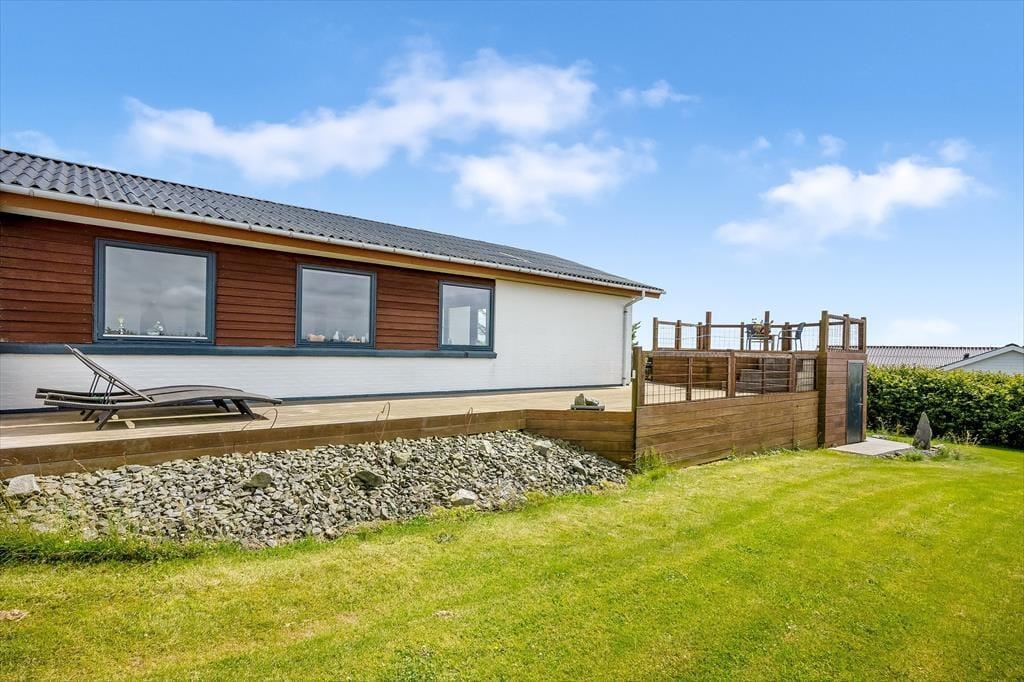 Den lukkede have, som omkranser huset, er noget helt særligt. Her kan børnene lege frit og trygt, mens hunden snuser nysgerrigt rundt i græsset. Haven er privat og fredelig, og den er perfekt til både solbadning, afslapning og leg – eller måske en god bog i skyggen af et træ. Terrassen er anlagt i flere niveauer, og herfra kan du nyde en skøn udsigt ud over det smukke landskab omkring Lemvig. Start dagen med morgenmad i solen og slut den af med et glas vin i aftenlyset – begge dele bliver endnu mere stemningsfulde, når omgivelserne emmer af sommeridyl. Uanset årstiden er haven og terrasserne et oplagt sted at trække frisk luft og nyde det stille sommerhusliv.