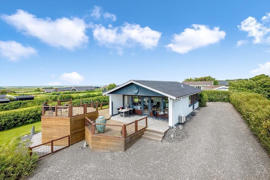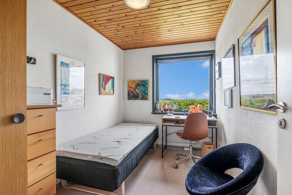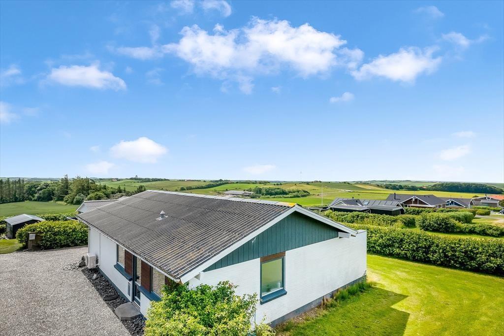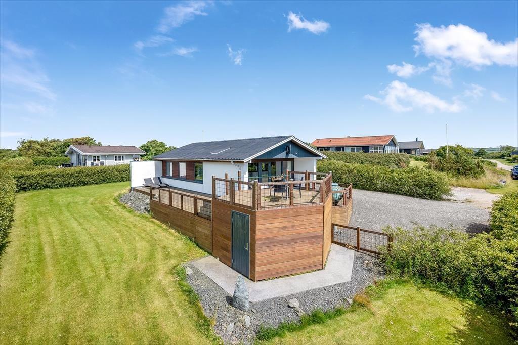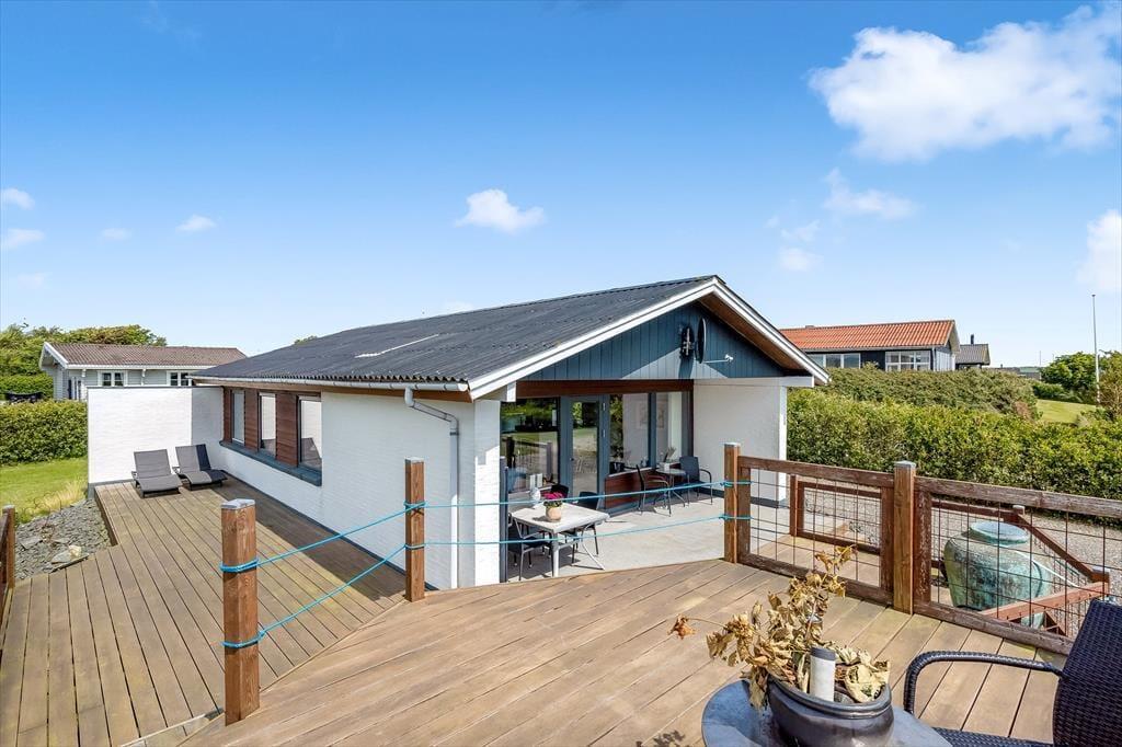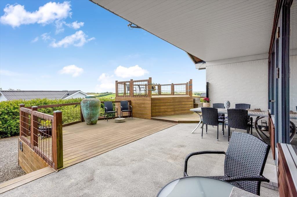 Den lukkede have, som omkranser huset, er noget helt særligt. Her kan børnene lege frit og trygt, mens hunden snuser nysgerrigt rundt i græsset. Haven er privat og fredelig, og den er perfekt til både solbadning, afslapning og leg – eller måske en god bog i skyggen af et træ. Terrassen er anlagt i flere niveauer, og herfra kan du nyde en skøn udsigt ud over det smukke landskab omkring Lemvig. Start dagen med morgenmad i solen og slut den af med et glas vin i aftenlyset – begge dele bliver endnu mere stemningsfulde, når omgivelserne emmer af sommeridyl. Uanset årstiden er haven og terrasserne et oplagt sted at trække frisk luft og nyde det stille sommerhusliv.