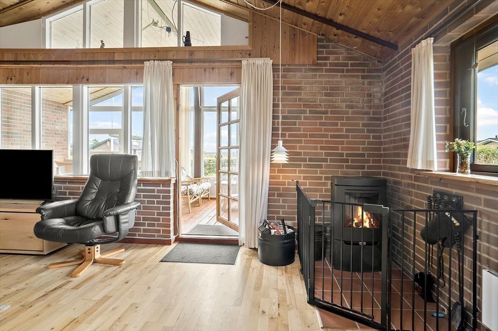 Sommerhusets rummelige indretning byder dig velkommen med en afslappet og hyggelig atmosfære. Den åbne planløsning mellem stue og køkken er ideel til samvær, hvor du kan nyde et lækkert måltid med familie og venner, mens fjorden spejler sig i vinduerne. Stuen er indrettet med komfortable møbler og en brændeovn, der skaber varme og hygge på de kølige aftener. Her kan du synke ned i sofaen med en god bog eller samles med familien til en hyggelig filmaften. Sommerhuset rummer tre behagelige soveværelser, og badeværelset byder på en dejlig brusekabine, hvor du kan lade dagens indtryk falde til ro.