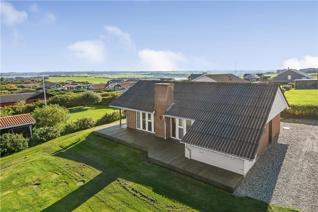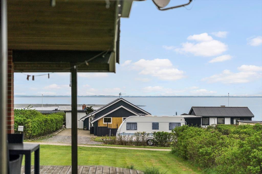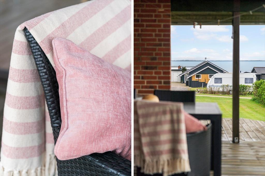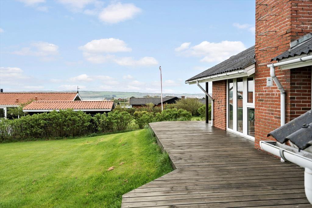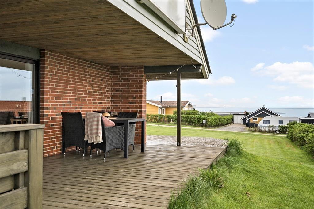 Terrassen er sommerhusets hjerte under åben himmel – og på Syrenvej 37 breder den sig elegant langs tre af husets sider. Det betyder, at du altid kan finde den helt rette plet, uanset om du søger morgensol, middagslæs eller aftenglød. Her er alle forudsætninger for at tilbringe hele dagen udendørs – med grillmad, bøger i liggestolen eller et glas vin i aftensolen. Den kuperede natur omkring huset giver både læ og en følelse af at være omsluttet af landskabet – og så er det næsten umuligt ikke at lade sig fascinere af det skiftende lys over fjorden, der hele tiden giver dig nye motiver at hvile øjnene på. Med det rolige sommerhusområde omkring dig og de mange muligheder for at nyde udelivet, bliver det svært ikke at sænke skuldrene og bare nyde nuet.