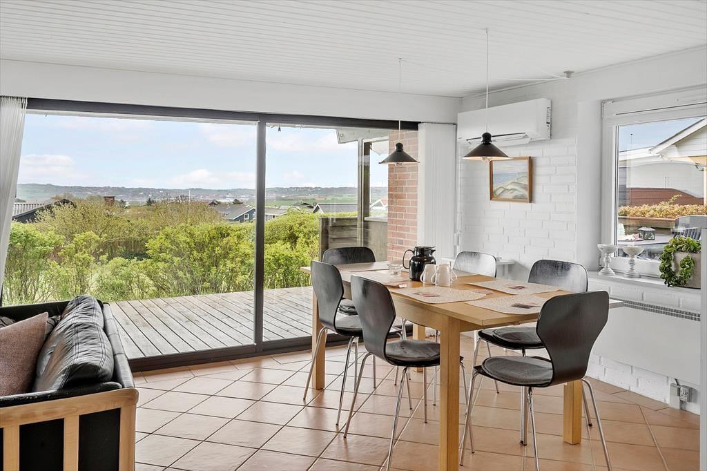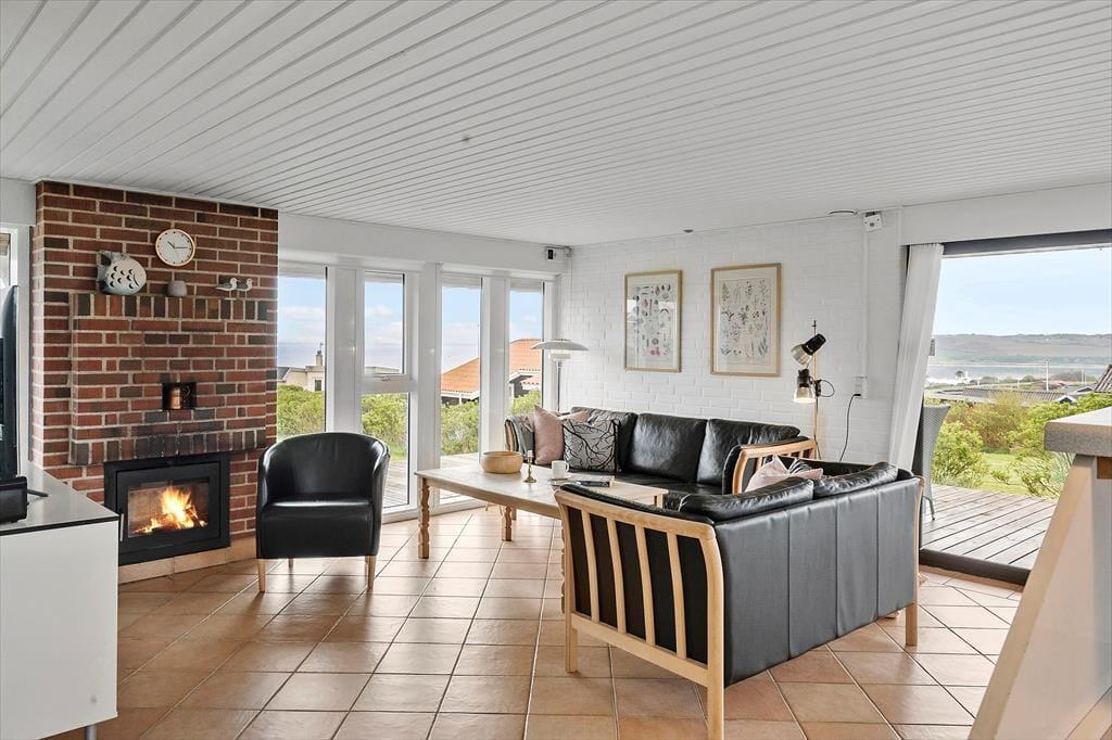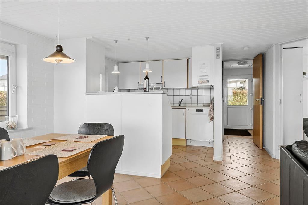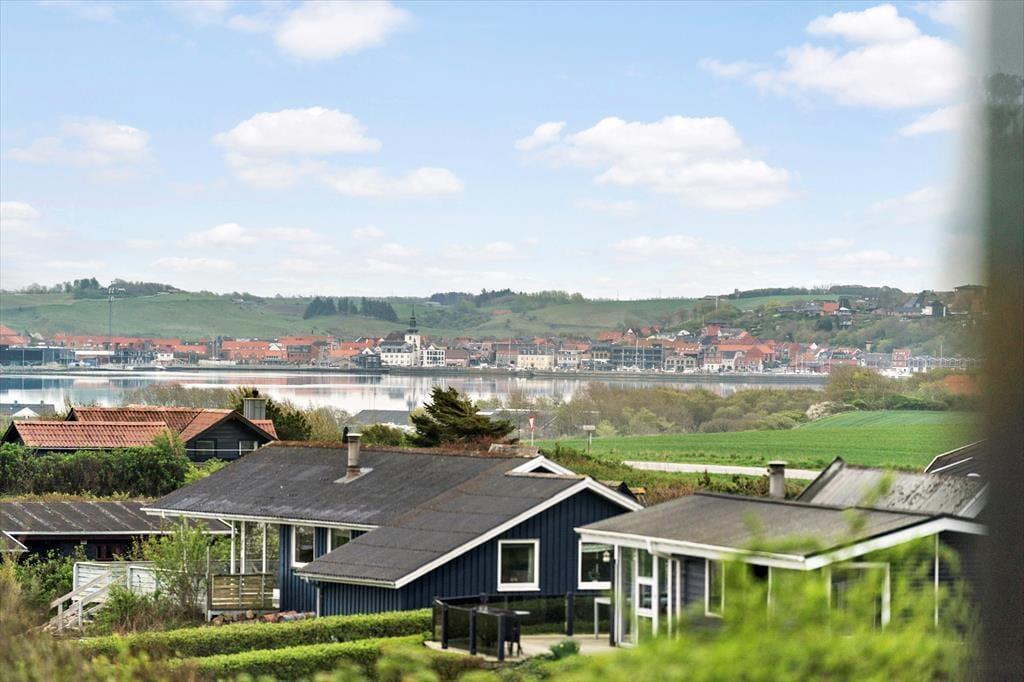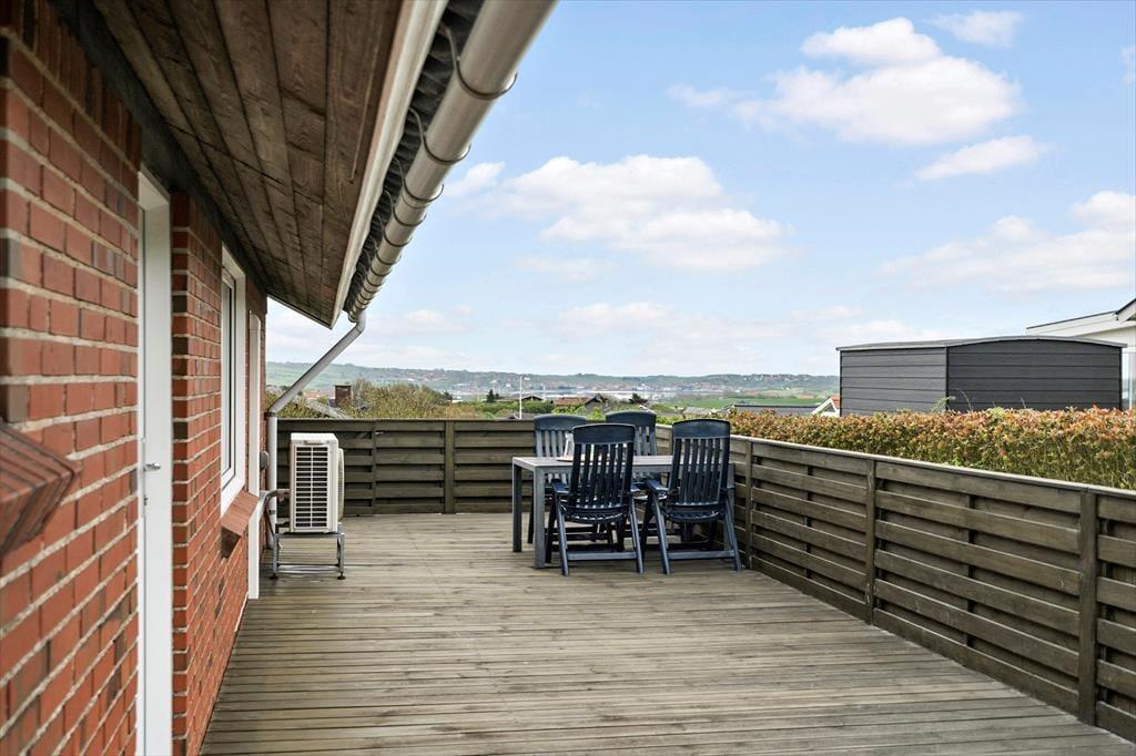 Terrassen er sommerhusets hjerte under åben himmel – og på Syrenvej 37 breder den sig elegant langs tre af husets sider. Det betyder, at du altid kan finde den helt rette plet, uanset om du søger morgensol, middagslæs eller aftenglød. Her er alle forudsætninger for at tilbringe hele dagen udendørs – med grillmad, bøger i liggestolen eller et glas vin i aftensolen. Den kuperede natur omkring huset giver både læ og en følelse af at være omsluttet af landskabet – og så er det næsten umuligt ikke at lade sig fascinere af det skiftende lys over fjorden, der hele tiden giver dig nye motiver at hvile øjnene på. Med det rolige sommerhusområde omkring dig og de mange muligheder for at nyde udelivet, bliver det svært ikke at sænke skuldrene og bare nyde nuet.