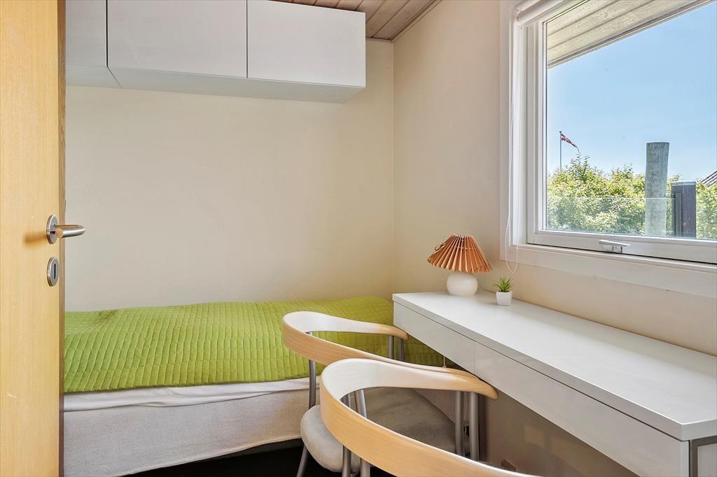 Når du træder ind i sommerhuset, bliver du mødt af en behagelig og lys atmosfære, hvor hver en detalje er tænkt med det formål at skabe rammerne for en afslappende ferie. De lyse farver og den enkle, men hyggelige indretning giver huset en luftig og venlig karakter, og der er nemt at føle sig hjemme. Køkken og stue ligger i åben forbindelse, så du har masser af mulighed for at være sammen med dem, du holder af – både når der skal laves mad og spilles spil ved spisebordet. De store vinduer trækker lyset ind og giver dig en flot udsigt over det kuperede landskab og fjorden, og fra stuen er der direkte udgang til haven og terrassen, så ude og inde smelter fint sammen. Her er plads til ro og nærvær – uanset om du er på kærestetur, på ferie med børnene eller med gode venner.