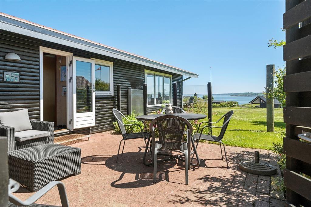 Haven omkring sommerhuset er et skønt sted at opholde sig i de lyse måneder, og det samme gælder terrassen, der inviterer til lange, afslappede stunder under åben himmel. Her kan du slå dig ned med morgenkaffen og nyde fuglesang og mild fjordluft, eller finde dig godt til rette med en god bog i eftermiddagssolen. Børnene har fin plads til leg på græsset, og du kan nemt samle hele familien til aftensmad og grillhygge udendørs. Udsigten over fjorden skifter i takt med lysets gang og vejrets luner – og netop det gør det så særligt at være her. Når mørket falder på, og aftenen bliver stille, kan du læne dig tilbage og bare være – i naturens egne farver og lyde.