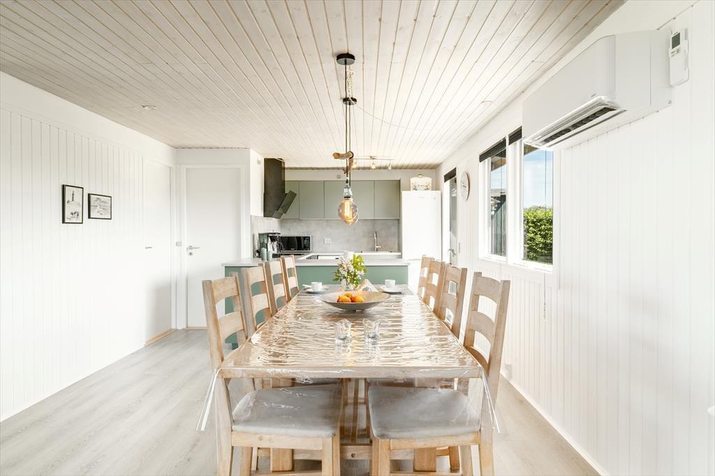Når du træder ind i sommerhuset på Bellisvej 12, er det første, du mærker, den lyse og indbydende stemning. Indretningen er enkel og hyggelig – præcis som man håber på, når man holder ferie i et klassisk dansk sommerhus. Stue og køkken ligger i åben forbindelse og skaber en afslappet ramme om både madlavning og samvær. Her er der plads til at samles hele flokken – om morgenmaden ved spisebordet, en god film i sofahjørnet eller en brætspilsaften med grin og konkurrence. Når du har brug for ro og lidt ekstra selvforkælelse, kan du søge mod husets sauna og mærke varmen løsne op i kroppen. Uanset om du er her med venner eller familie, giver huset dig de perfekte betingelser for at koble helt fra og nyde ferien i dit eget tempo.