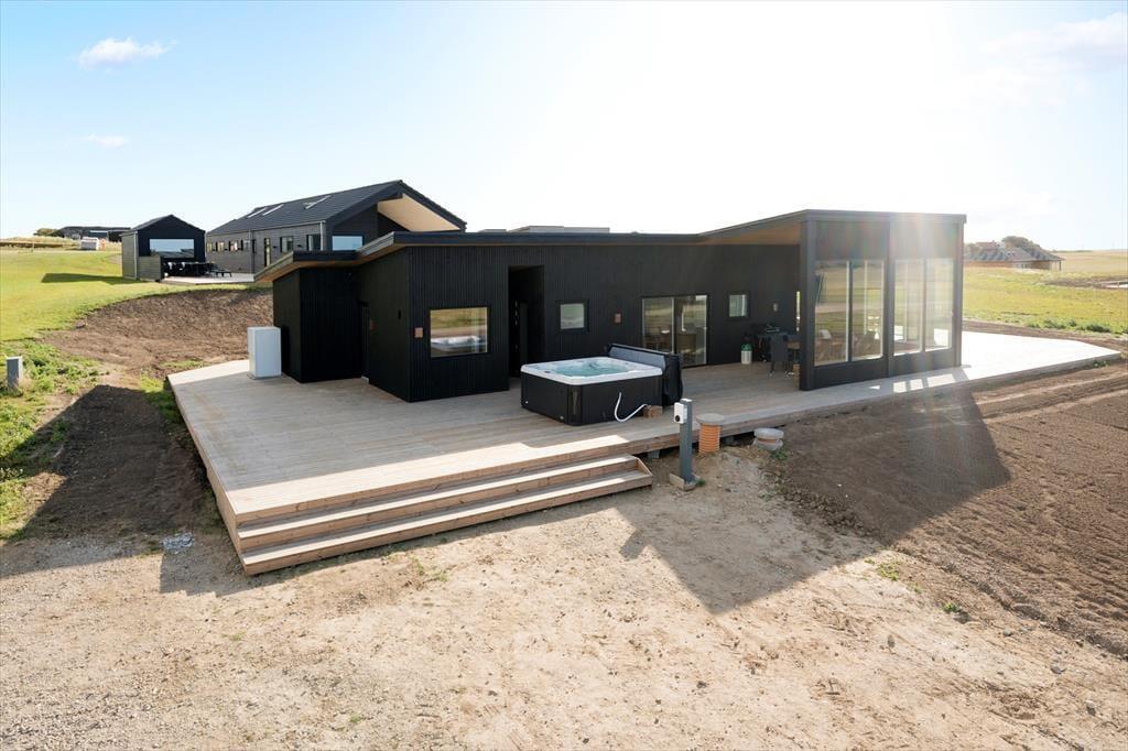 Der er skabt optimale rammer for udelivet her på Pragtstjernevej 22. En stor træterrasse snor sig rundt om huset og åbner op for timevis af afslapning under åben himmel. Her kan du finde sol og læ, nyde måltider i det fri eller bare læne dig tilbage og lade blikket glide ud over det smukke landskab. På den overdækkede terrasse kan ferien fortsætte i al slags vejr, og når solen går ned, og duggen lægger sig over fjorden, er det oplagt at synke ned i den varme spa og lytte til stilheden, mens mørket falder på. Huset ligger fredeligt og ugeneret, og de rolige omgivelser inviterer både børn og hunde til leg og nysgerrige opdagelser. Går du op i golf, bor du ovenikøbet tæt på en af områdets flotte golfbaner – så det er bare med at pakke udstyret og nyde en runde i det fri.