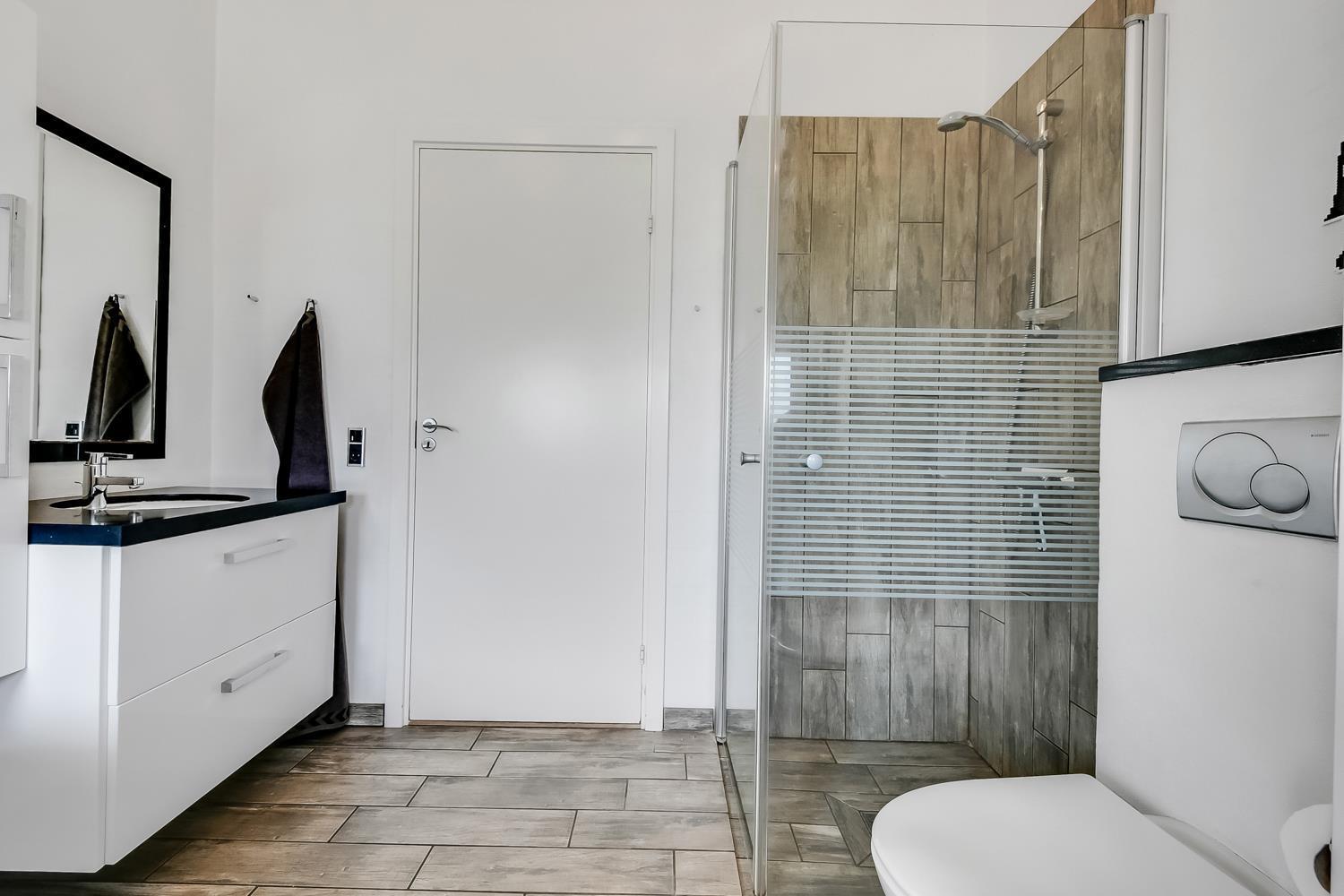 Allerede når I kører op til huset kan I se at det er et meget velholdt feriehus. Der er en kombineret stue og køkken, hvor køkkenet er afskærmet med en væg, her er spisebordet også placeret. Dejlig lys opholdsstue med gode lædermøbler, her er der TV med danske og tyske programmer samt en DVD afspiller, trægulv, der er desuden en dejlig brændeovn som sammen med varmepumpen sørger for en behagelig varme på de kolde dage og begge er medvirkende til at forbrugsafregningen blir lavere. Køkkenet er godt udstyret og har el-keramisk kogeplade, opvaskemaskine, emhætte, mikroovn, indbygningsovn samt en køle-/fryseskab her er der også trægulv. Husets badeværelse er med toilet, håndvask, bruser, spabad samt vaskemaskine og tørretumbler. 3 gode soverum: 1DS + 1DS + 1 doppelt sovesofa. Til de mindste gæster er der en barneseng. Et meget moderne og indbydende hus. Ikke rygerhus. 1 husdyr tilladt.