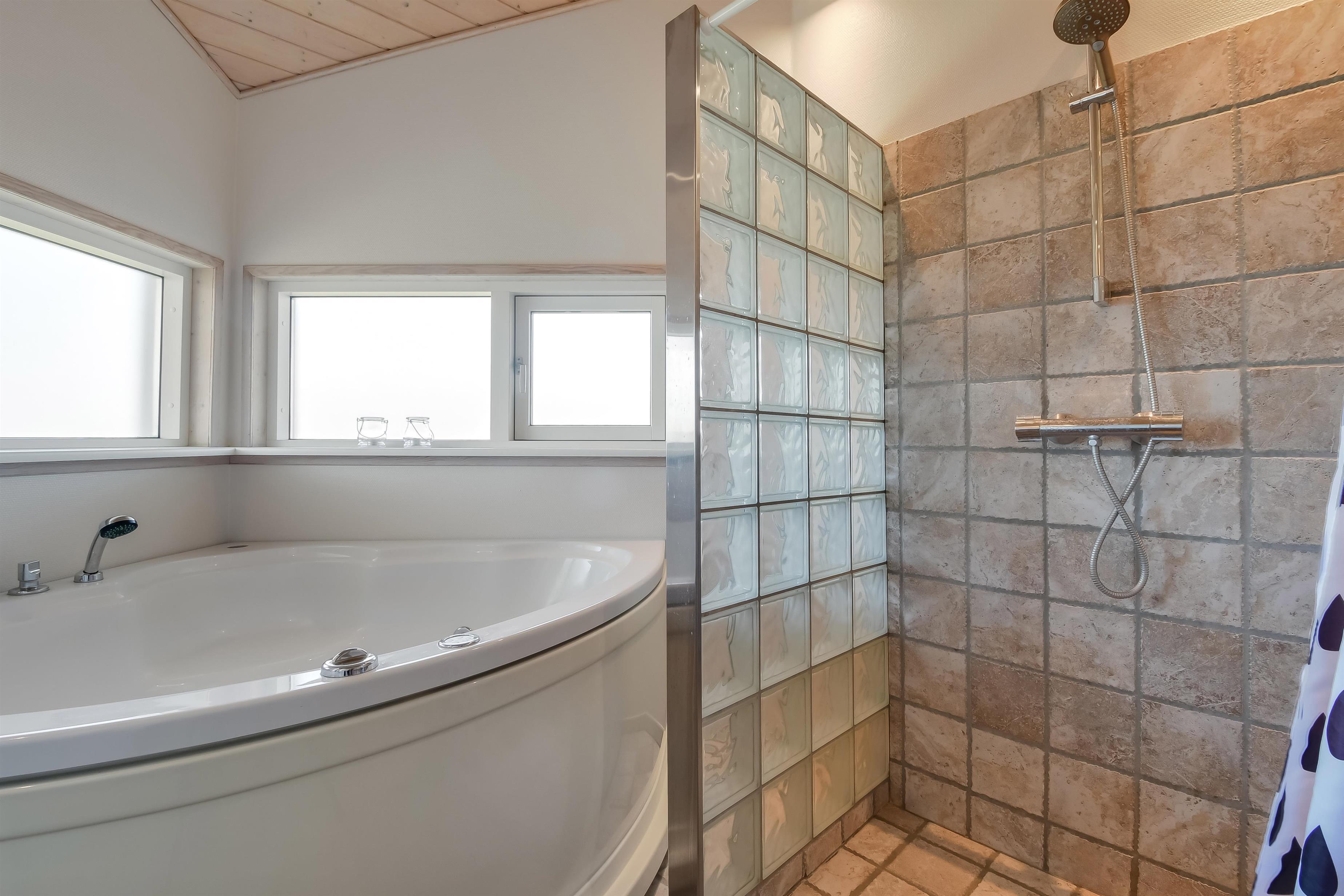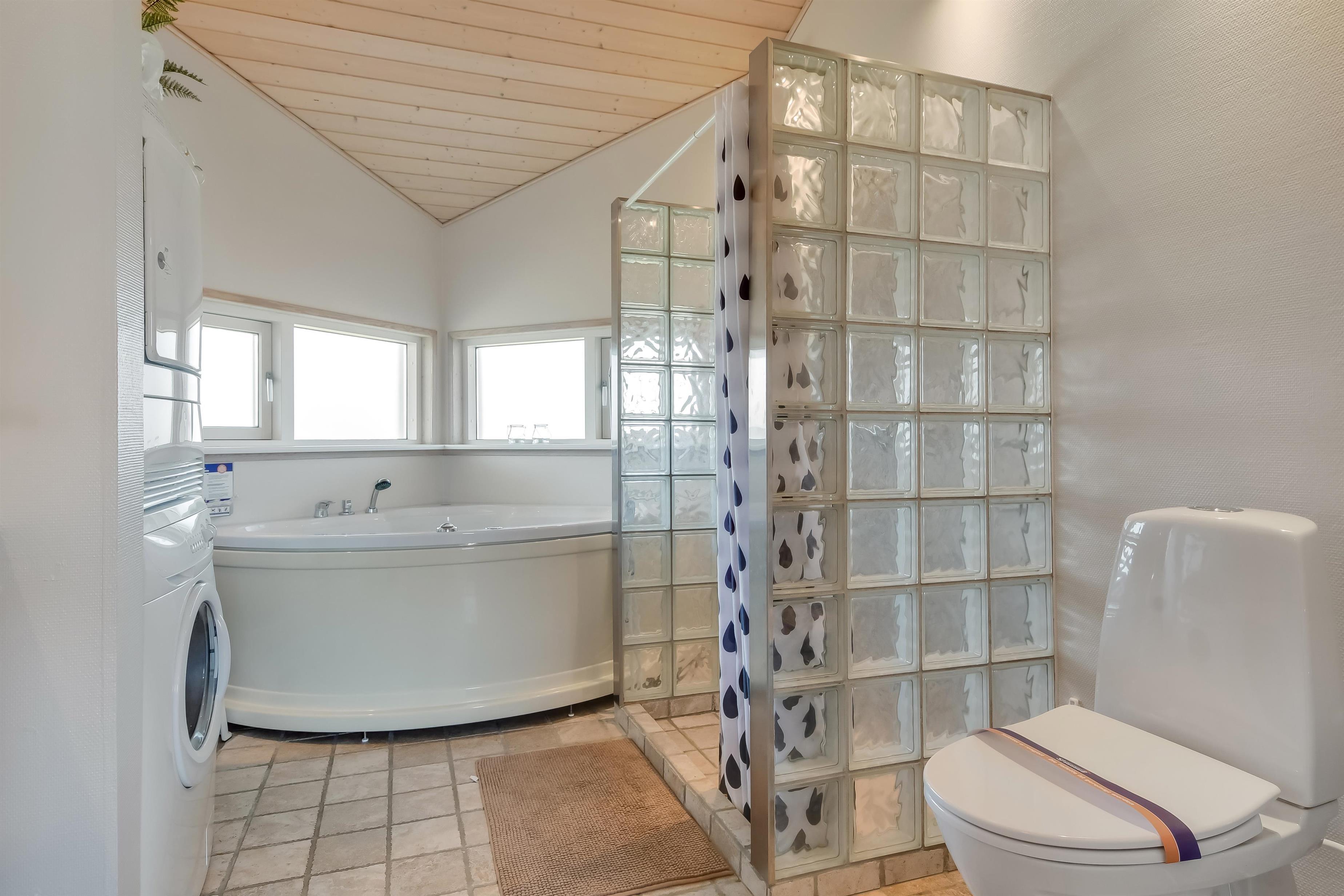 Badeværelset er moderne og lækkert, med et spabad, vaskemaskine, tørretumbler og gulvvarme. Der er også gratis adgang til Lemvig Badeland og gratis internetforbindelse.