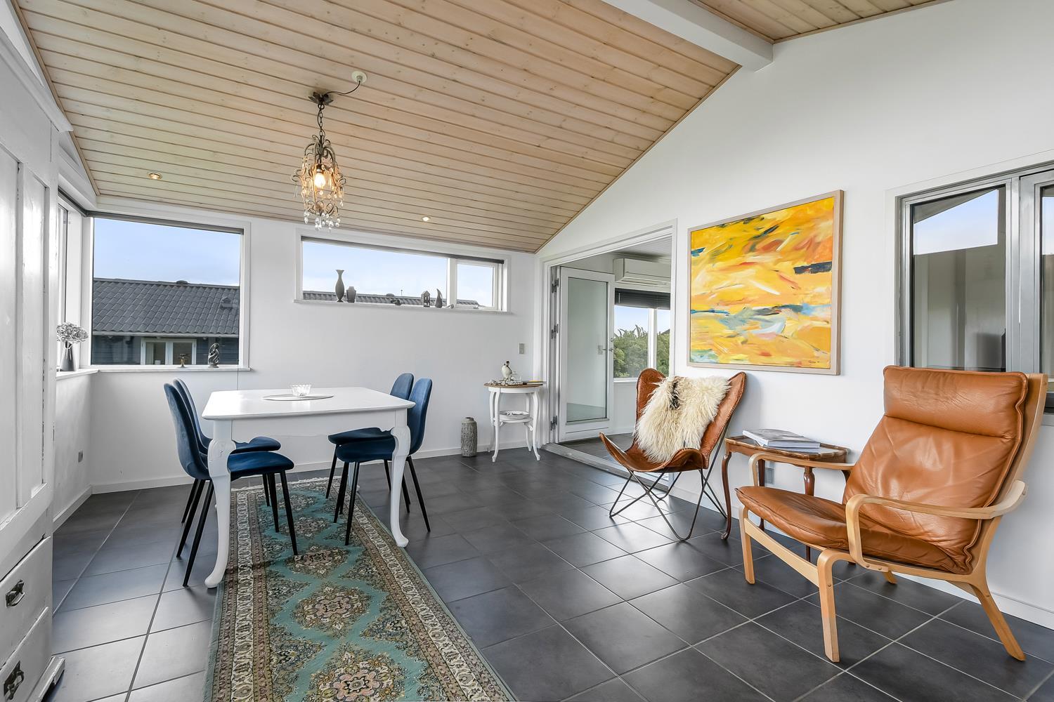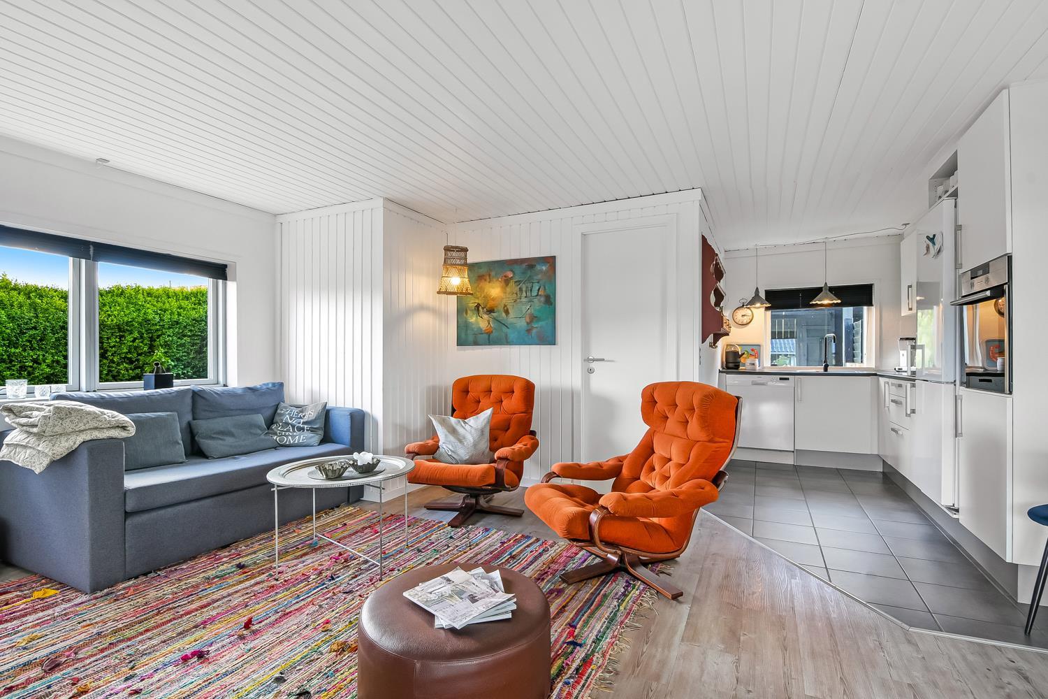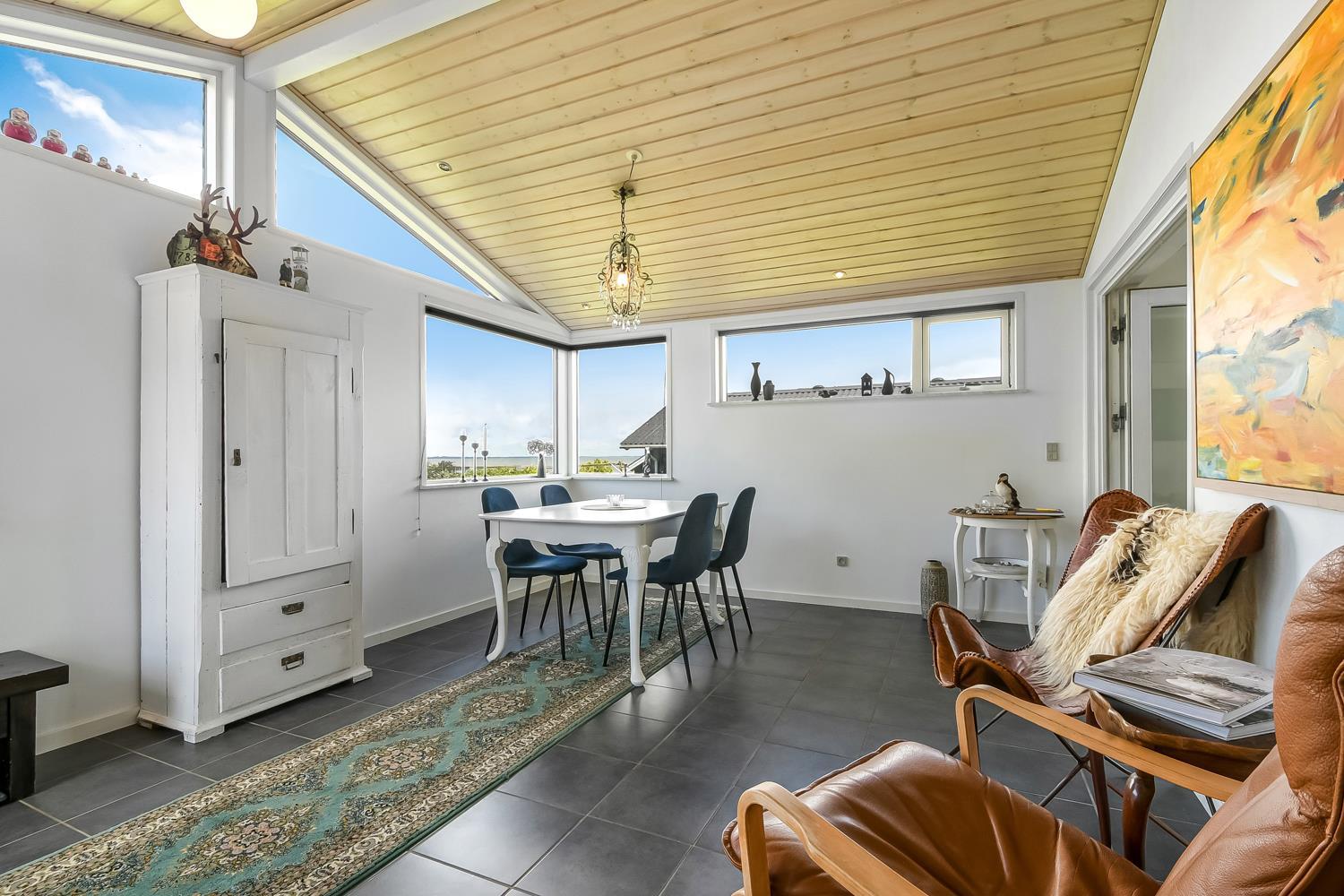 Velholdt feriehus på ca. 79 m2 og skønt indrettet med bl.a pæne møbler samt tv med tyske kanaler og mulighed for streaming. Huset rummer et kombineret opholdsstue og køkkenhjørne med keramiske kogeplader, indbygningsovn, emhætte, mikroovn, opvaskemaskine og køleskab. Der er 2 soveværelser med gulvtæppe -en 3/4 og to enkeltsenge. Fra opholdsstuen er der gennem de store fløjdøre adgang til en tilbygget spisestue med spiseplads, hvor en pragtfuld udsigt over landskabet med Limfjorden i baggrunden kan nydes. Herfra er der også adgang til husets badeværelse indeholdende toilet, håndvask, nedsænket bruser, vaskemaskine samt klinkegulv med gulvvarme. Rygning er ikke tilladt i huset. Max 1 lille hund tilladt. Et rigtig dejlig sommerhus som er utroligt hyggeligt og til at overskue.