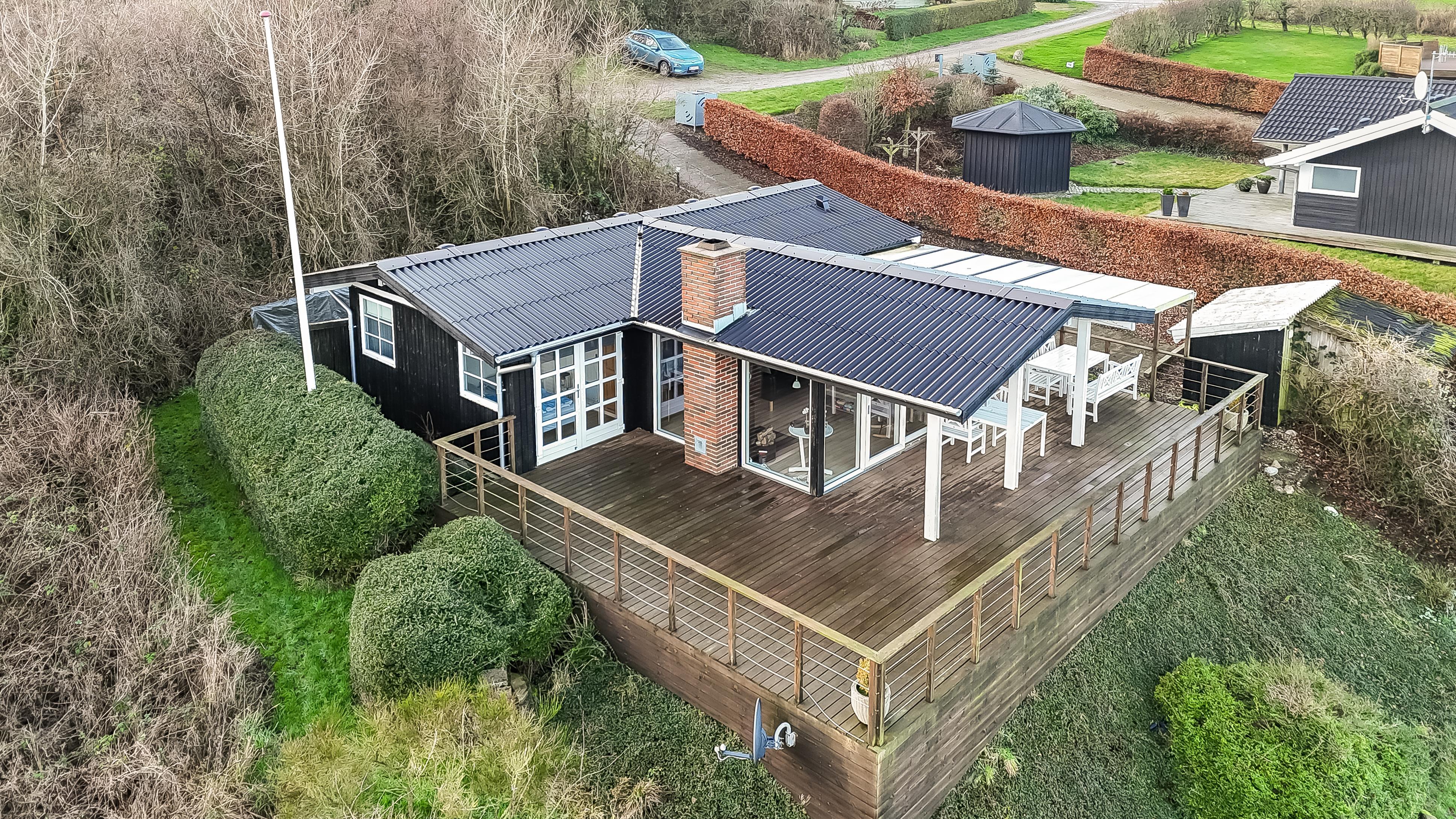 Dette velholdte feriehus byder på en enestående panoramaudsigt over Limfjorden – en udsigt, der kan nydes fra både stue og terrasse, og som gør opholdet til noget ganske særligt. Et fantastisk dejligt feriehus, der kan benyttes året rundt – perfekt for den lille familie eller for par, som ønsker fred, natur og en betagende udsigt.